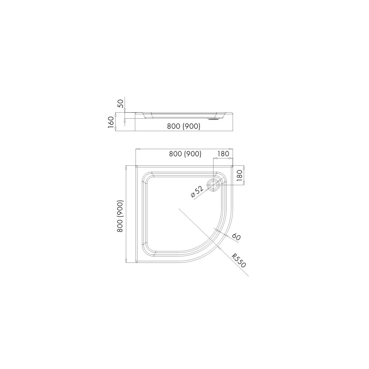 Schedpol Eko 2.0 Halbrunde Duschwanne 80x80 cm weiß 3.322/O