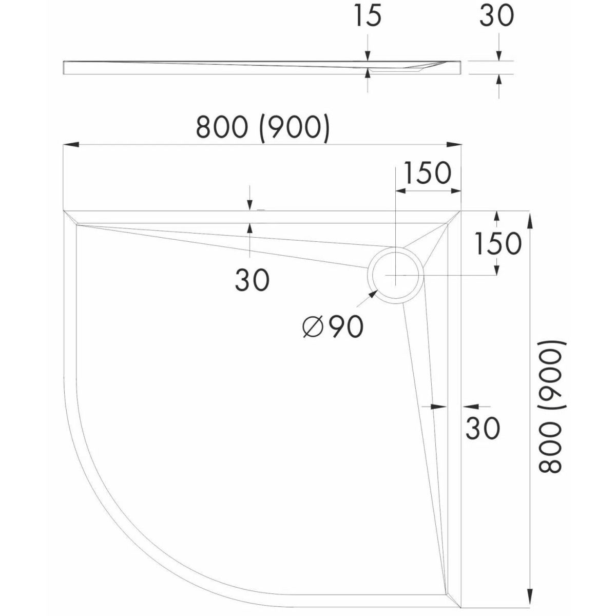 Schedpol Etrusco Halbrunde Duschwanne 80x80 cm schwarz 3.463/C/ST