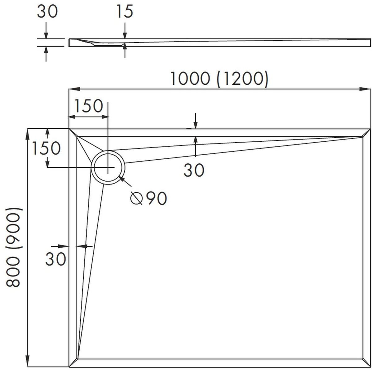 Schedpol Etrusco Rechteckige Duschwanne 120x90 cm weiß 3.470