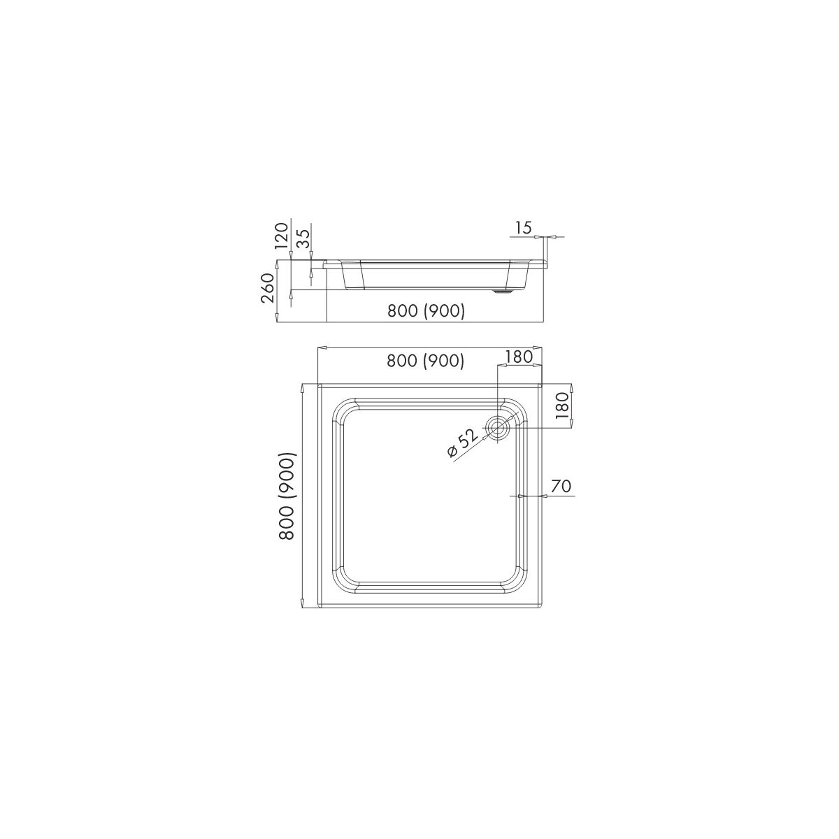Schedpol Grawello Quadratische Duschwanne 90x90 cm weiß 3.012