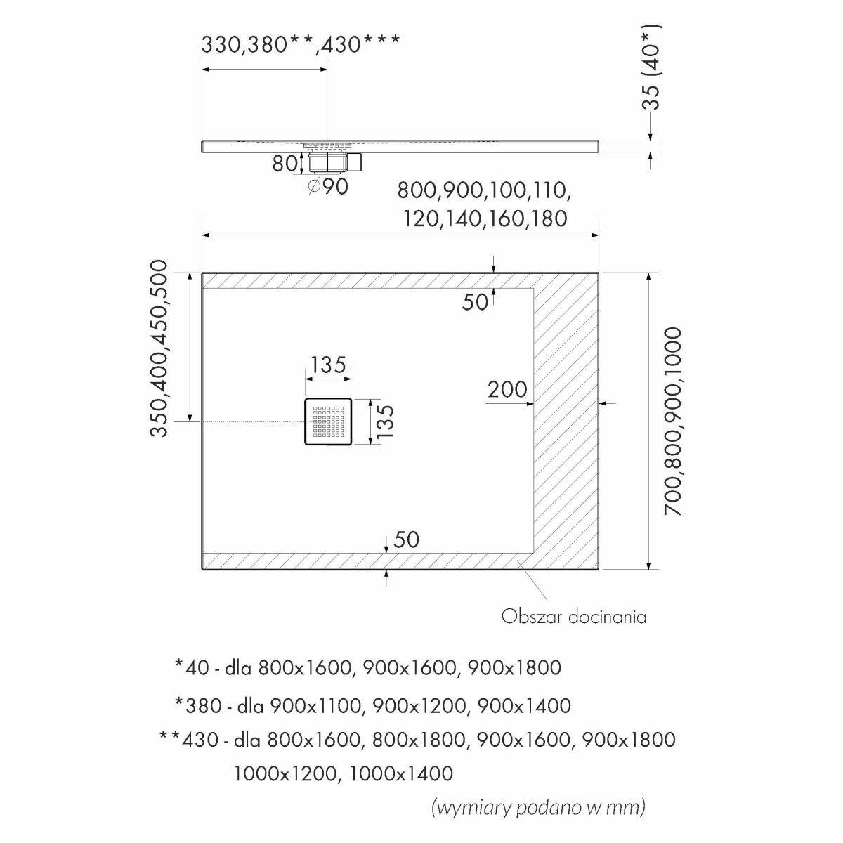 Schedpol Kalait Cement Stone Rechteckige Duschwanne + Abdeckung 140x90 cm zement 3.3119/CT/ST-M2