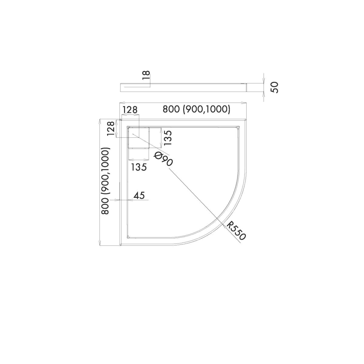 - Radius: 550 mm