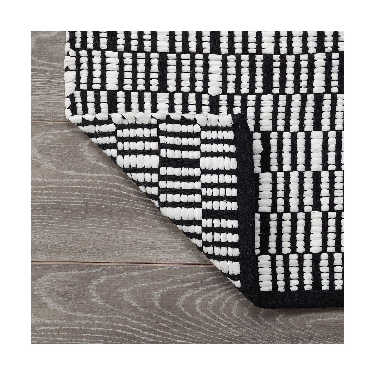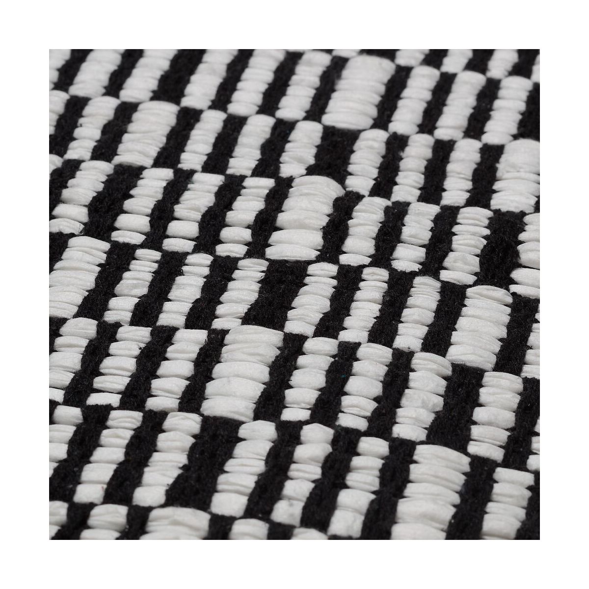 - Er besteht aus recycelten Materialien, wodurch jeder Badezimmerteppich ein Unikat ist.