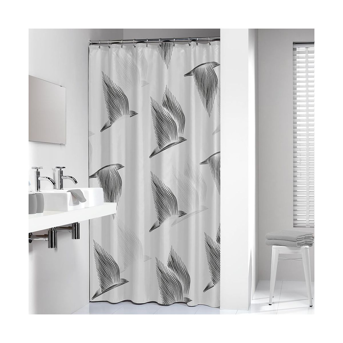 Sealskin Birds Duschvorhang 200x180 cm weiß-schwarz 800141