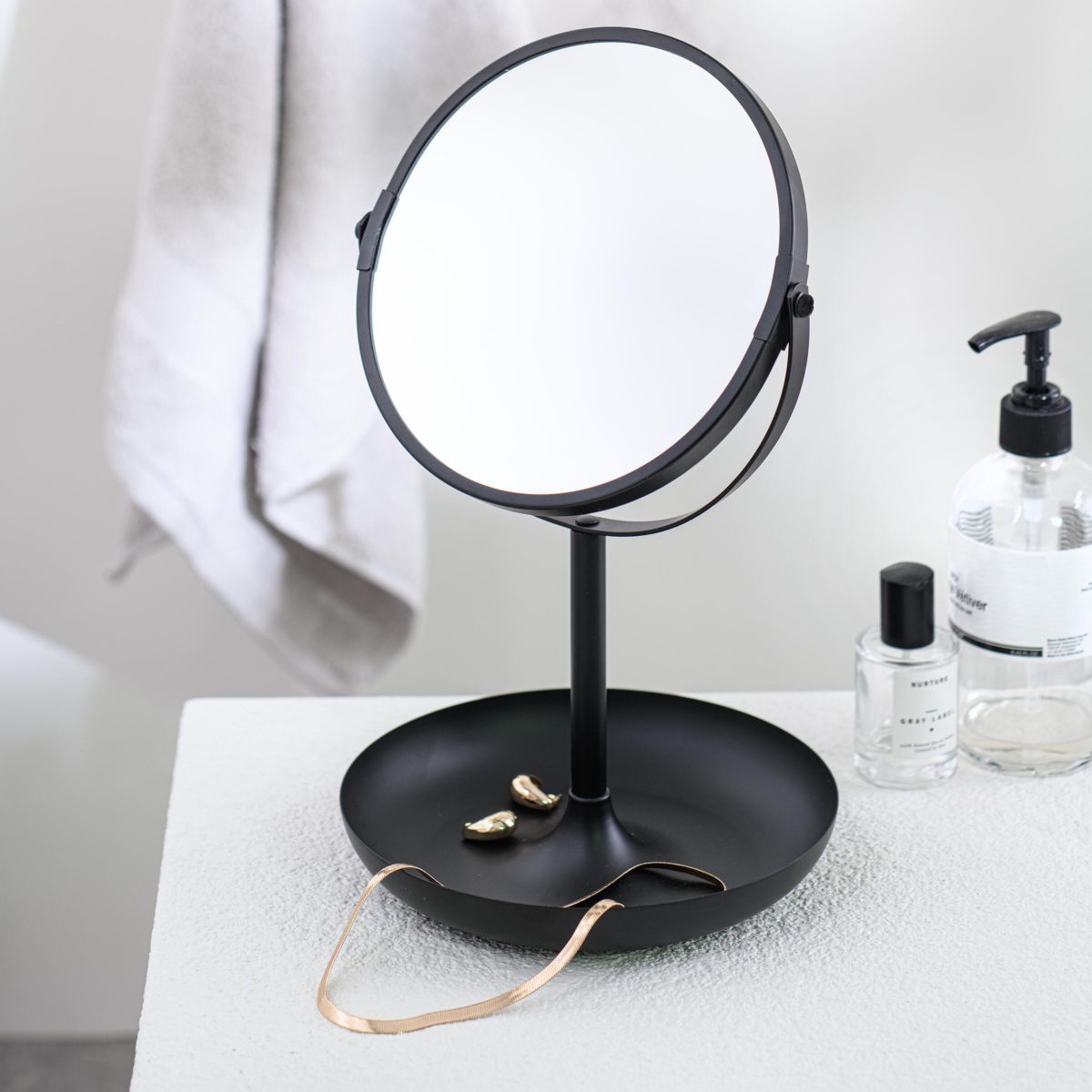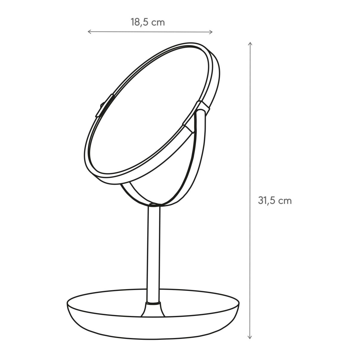 Sind Sie auf der Suche nach dem perfekten Make-up-Spiegel? Der Kosmetikspiegel Brix 2 in 1 vereint Eleganz, Funktionalität und modernes Design. Ausgestattet mit einer praktischen Ablage eignet er sich perfekt für Schmuck, Haaraccessoires oder Kosmetika. Die um 360° drehbare Konstruktion ermöglicht eine einfache Einstellung des richtigen Winkels, und die 5-fache Vergrößerung ermöglicht präzises Auftragen von Make-up und Styling.