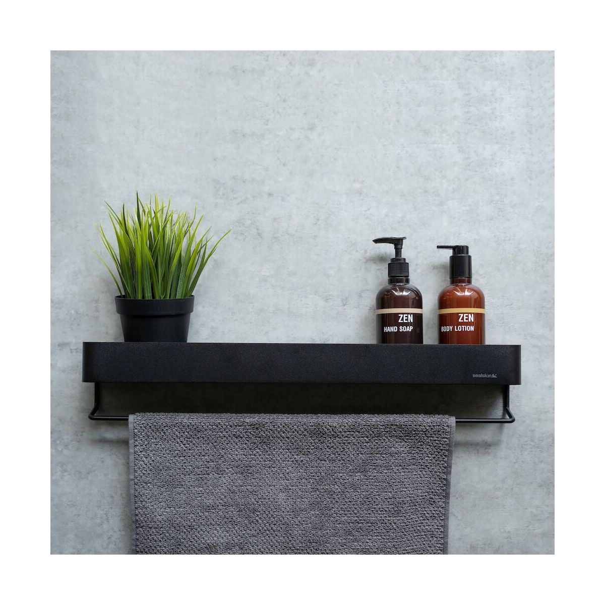 Die in den Handtuchhalter integrierte Ablage Sealskin Brix aus Metall in schwarzer Ausführung ist vielseitig einsetzbar. Das Regal ist der ideale Platz für Ihre Kosmetika und kleine Topfpflanzen. Unter dem Regal befindet sich ein Handtuchhalter, an dem Sie Handtücher aufhängen können. Das Regal mit Handtuchhalter wird mit den mitgelieferten Schrauben befestigt.