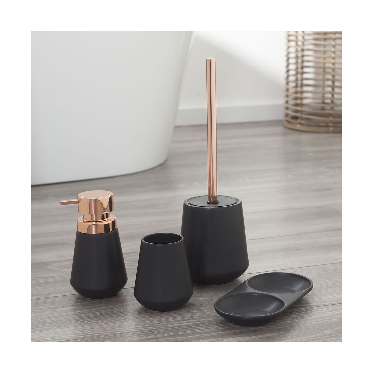 Die Serie Sealskin Conical hat eine moderne konische Form, die in Ihrem Badezimmer oder Ihrer Toilette ein echter Blickfang ist. Verleihen Sie Ihrem Badezimmer ein schönes und gepflegtes Aussehen, indem Sie den Seifenspender und den Becher auf das Tablett stellen.