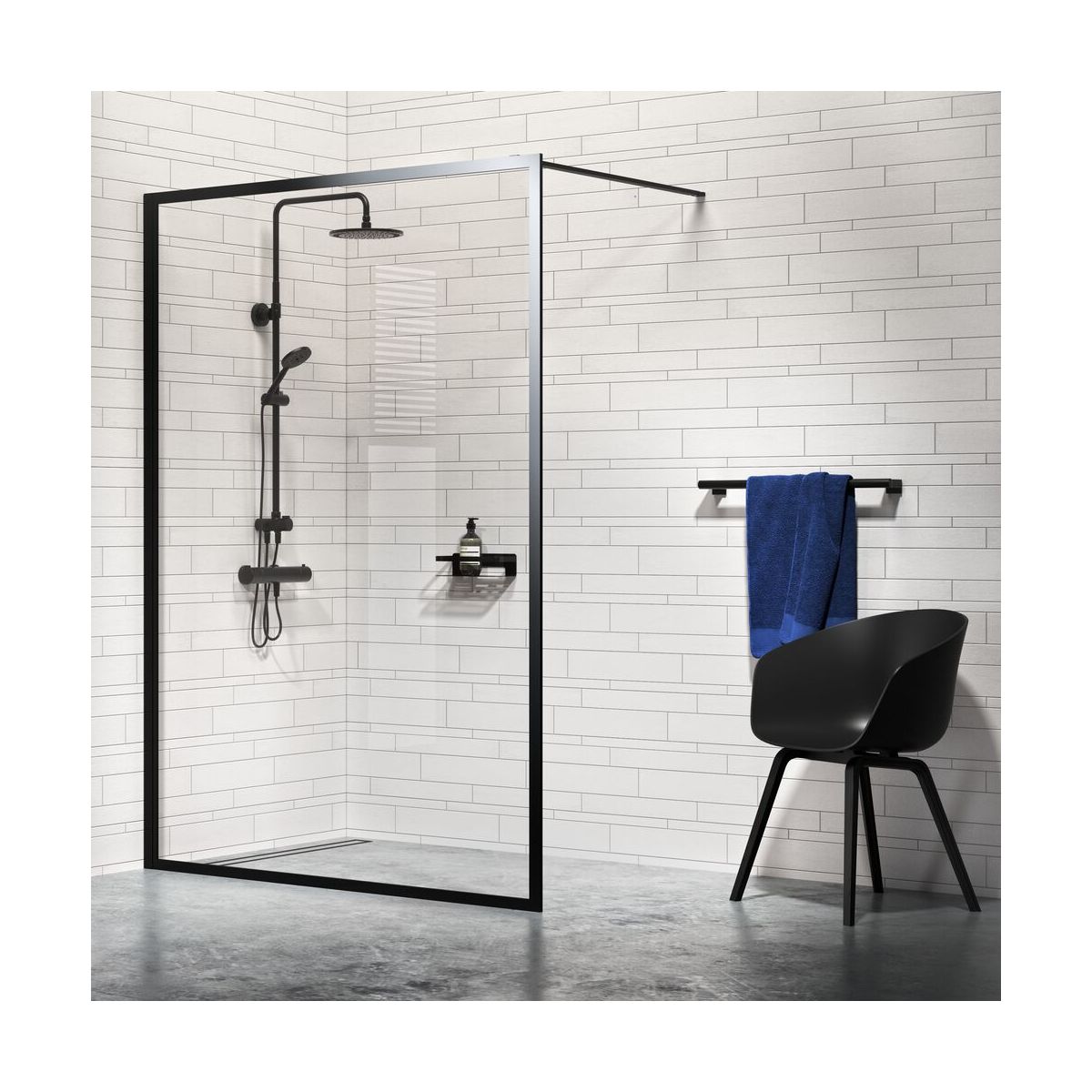 Sealskin Contour Begehbare Duschwand 90 cm schwarz Matte/durchsichtiges Glas CDA30886195100