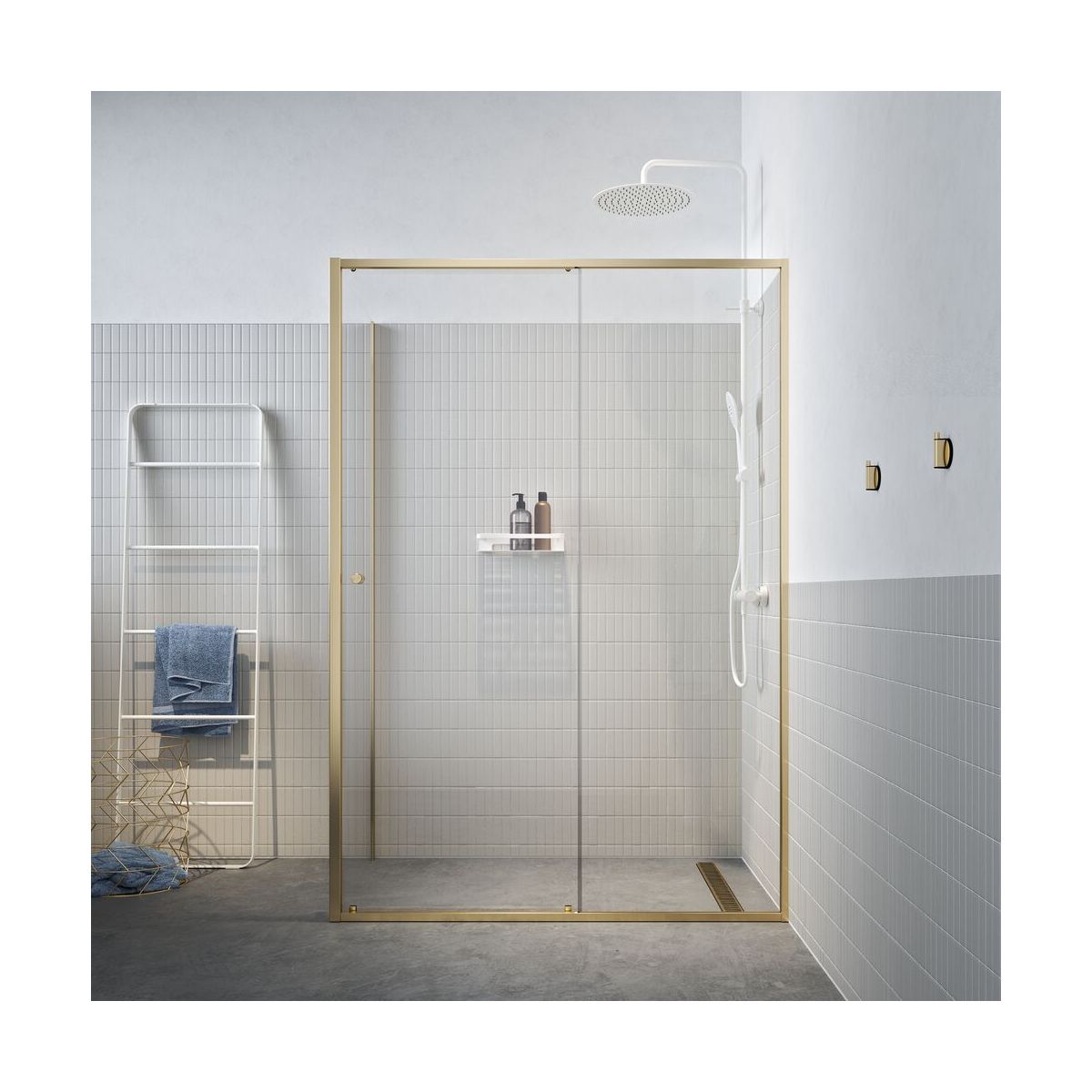Vom einfachen bis zum luxuriösen Badezimmer. Diese Schiebetüren mit Seitenpaneel aus der Serie Contour zeichnen sich durch eine solide Konstruktion und gleichzeitig ein minimalistisches, elegantes Design aus. Die Oberfläche des Profils in gebürstetem Gold vermittelt sofort einen luxuriösen Eindruck. Das transparente Sicherheitsglas der Tür und der Seitenwand ist 6 mm dick und mit einer Anti-Kalk-Beschichtung versehen, sodass Ihre Duschkabine länger schön bleibt. Da die Türen verschiebbar sind, eignet sich diese geräumige Lösung auch für kleinere Badezimmer.