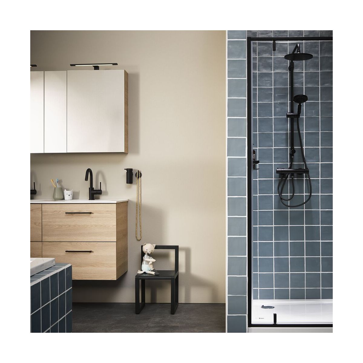 Die einteiligen Flügeltüren mit Seitenwand aus der Contour-Serie machen echte Klasse für jedermann zugänglich. Der minimalistische Rahmen vereint zwei Welten: solide Konstruktion und minimalistisches, klares Design. Das 6 mm starke Sicherheitsglas ist mit einer Anti-Kalk-Beschichtung versehen, sodass Ihre Dusche länger sauber bleibt. Die Türen liegen nicht direkt an der Wand an, sodass sie nicht gegen den Heizkörper oder Accessoires stoßen. Die robuste, matte Oberfläche in Schwarz ist ein schönes Designelement für jedes Badezimmer.
