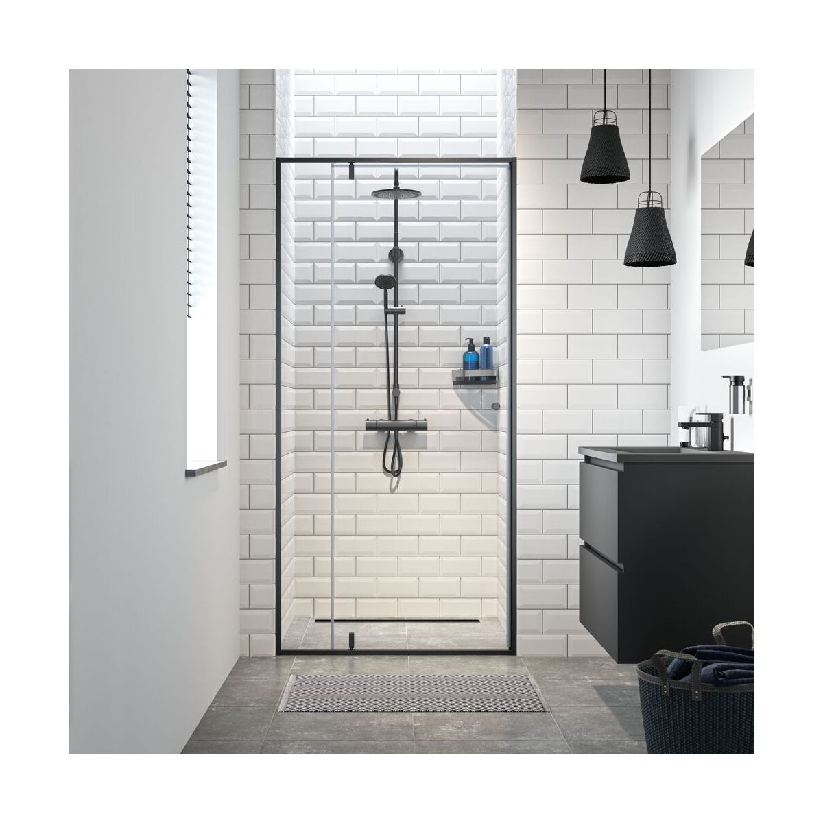 Die 2-teiligen Flügeltüren der Serie Contour sind für den Einbau in eine Nische vorgesehen. Dieses Produkt vereint eine solide Konstruktion mit einem minimalistischen Design, wodurch es sich stilvoll in Ihr Badezimmer einfügt. Das 6 mm dicke Sicherheitsglas verfügt über eine Beschichtung, die Kalkablagerungen verhindert und so für lang anhaltende Sauberkeit und Hygiene sorgt. Die Türen werden nicht direkt an der Wand montiert, wodurch ein Anstoßen an Heizkörper oder andere Badaccessoires verhindert wird. Die mattschwarze Oberfläche verleiht jedem Badezimmer ein solides und zeitloses Aussehen.