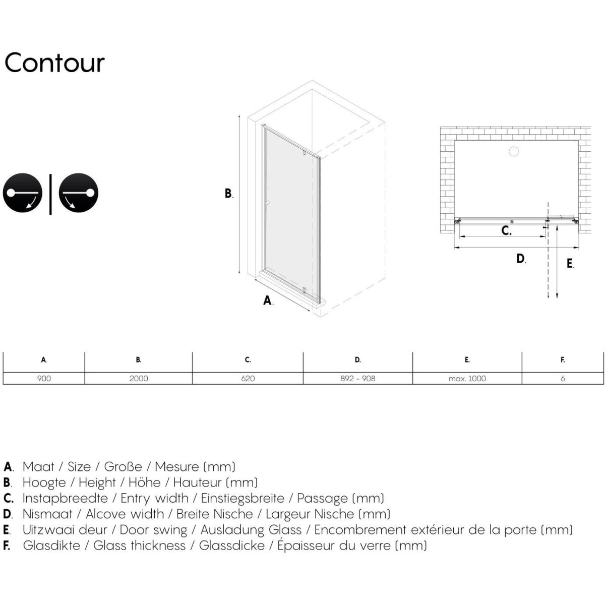 Die einteiligen Flügeltüren der Serie Contour sind für den Einbau in eine Nische vorgesehen. Dieses Produkt vereint eine solide Konstruktion mit einem minimalistischen Design, wodurch es sich stilvoll in Ihr Badezimmer einfügt. Das 6 mm dicke Sicherheitsglas verfügt über eine Beschichtung, die Kalkablagerungen verhindert und so für lang anhaltende Sauberkeit und Hygiene sorgt. Die Türen werden nicht direkt an der Wand montiert, wodurch ein Anstoßen an Heizkörper oder andere Badaccessoires verhindert wird. Die Oberfläche aus gebürstetem Edelstahl verleiht jedem Badezimmer ein solides und zeitloses Aussehen.