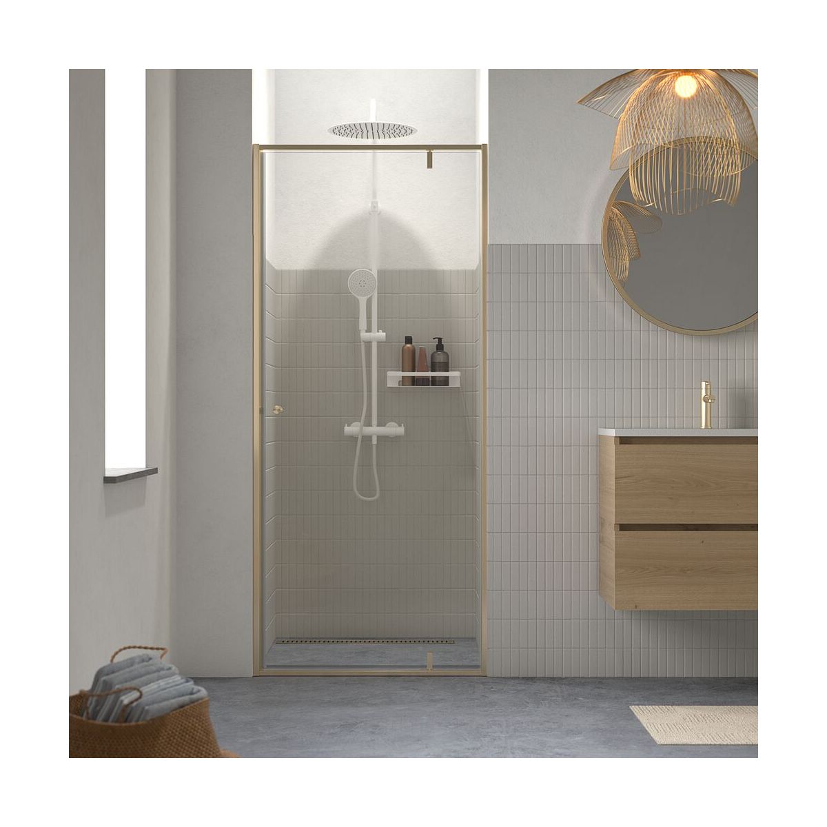 Wenn Sie auf der Suche nach einer luxuriösen Duschlösung sind, ist die Serie Contour in gebürstetem Gold die perfekte Wahl. Alle Elemente dieser Duschkabine schaffen eine entspannende Atmosphäre, ohne dabei aufdringlich zu wirken. Das 6 mm starke Sicherheitsglas ist mit einer Anti-Kalk-Beschichtung versehen, sodass die Dusche länger kristallklar bleibt. Außerdem sind die Türen nicht direkt an der Wand befestigt, sodass sie nicht gegen den Heizkörper oder andere Accessoires stoßen. Die goldenen Details und die Kombination der Funktionen machen diese Duschlösung zu einer perfekten Ergänzung für Ihr Badezimmer.