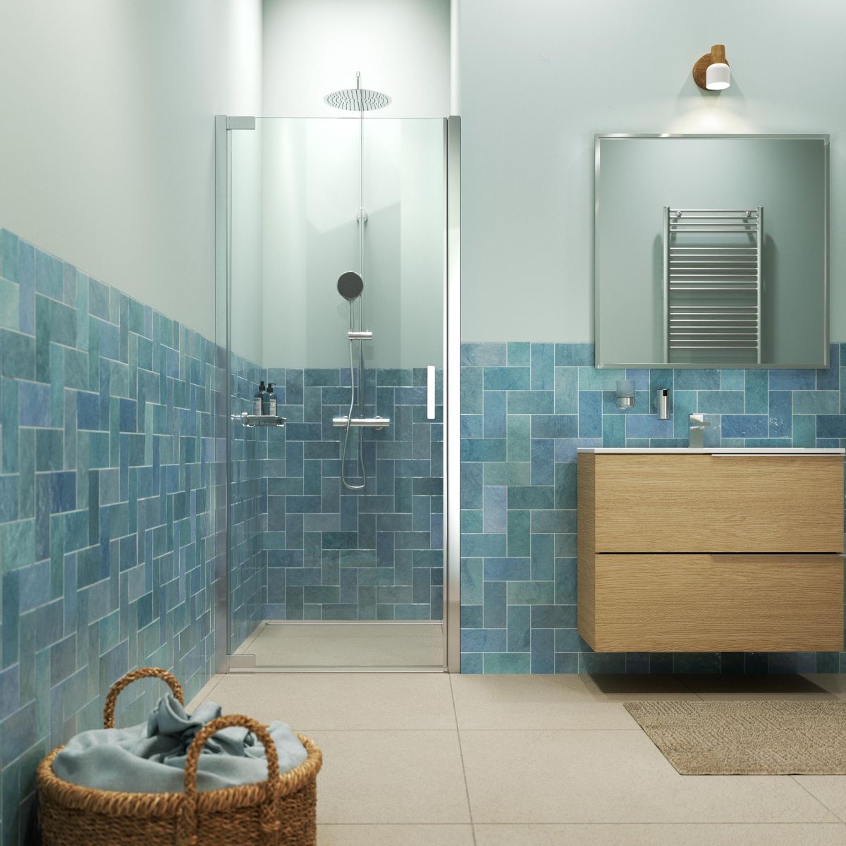 - Zusätzlicher Komfort in der Dusche: Diese Glaswand ist 2 Meter hoch, sodass die Wärme länger in der Dusche bleibt.