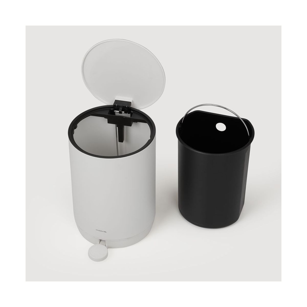 Ein Mülleimer mit Pedal, der nicht unbemerkt bleiben möchte. Dieser Mülleimer aus der Serie Sealskin Mind stiehlt in jedem Raum, in der Küche, im WC oder im Badezimmer die Show. Der flache Deckel verleiht ihm ein modernes Aussehen. Mit Mind sorgen Sie für Subtilität.