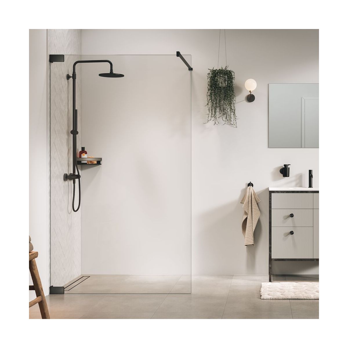 - Für mehr Komfort in der Dusche ist diese Glaswand 2 Meter hoch, sodass die Wärme länger in der Dusche bleibt.