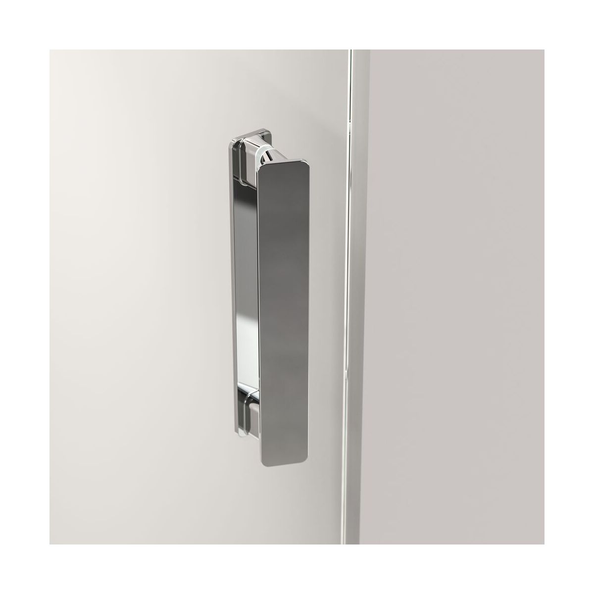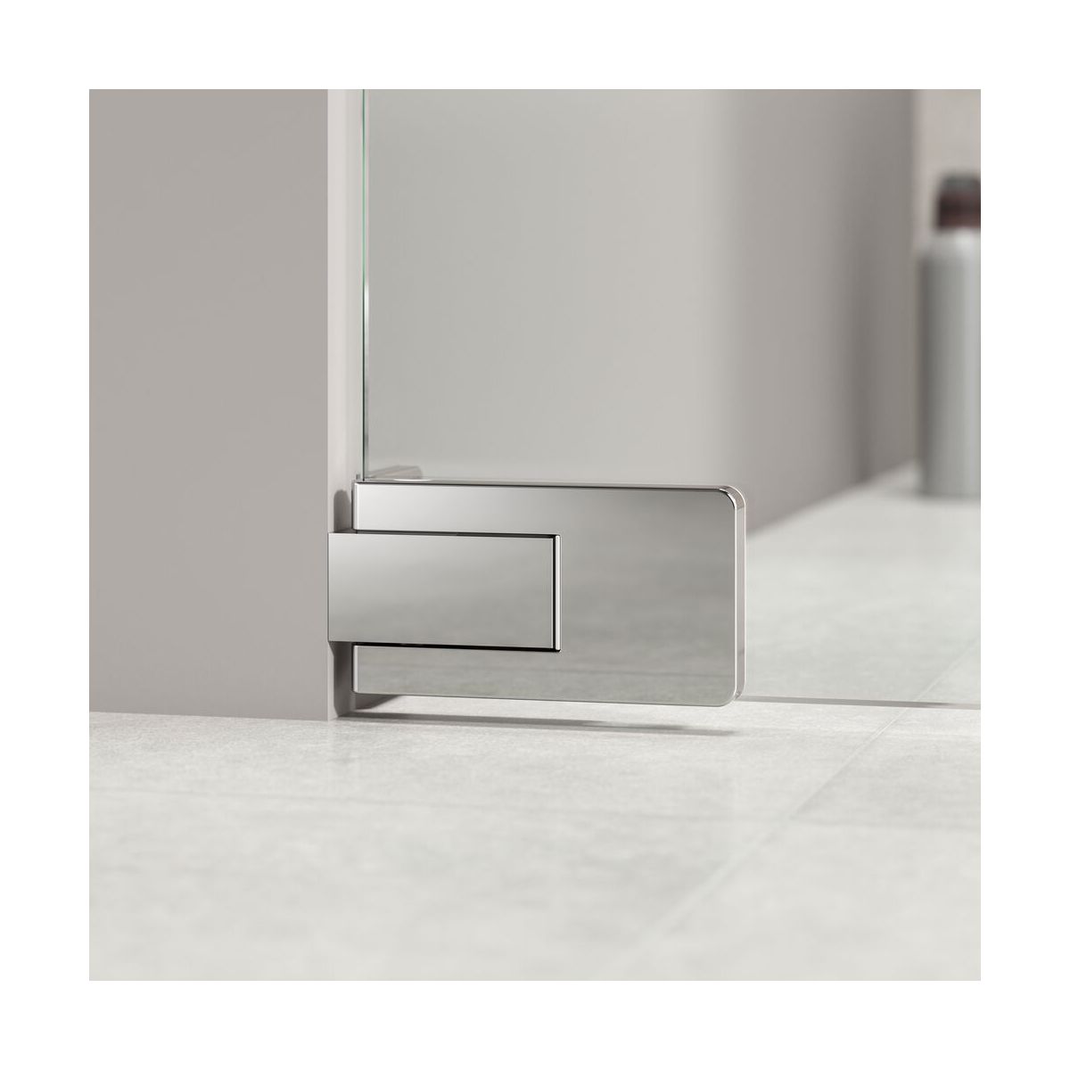 Verleihen Sie Ihrem Badezimmer mit der Pure-Flügeltür für Nischen zusätzlichen Komfort. Dank ihres minimalistischen Designs wirkt Ihr Badezimmer sofort geräumiger und offener. Die Tür ist 99,5 cm breit und ganze 200 cm hoch, was für mehr Wärme und Komfort beim Baden sorgt. Hochwertige Edelstahlbefestigungen sorgen für eine flache Verbindung mit 8 mm starkem Sicherheitsglas, das mit einer Beschichtung gegen Kalkablagerungen versehen ist. So bleibt das Glas sauber und lässt sich nach dem Baden leichter trocknen. Wer würde das nicht wollen? Diese Flügeltüren lassen sich nach innen oder außen öffnen und sind mit einem automatischen Schließsystem ausgestattet, das das Schließen erleichtert. Die Scharniere und der Türgriff sind in silbernem Glanz gehalten. Ein zeitloses Finish, das gut in ein modernes Badezimmer passt.