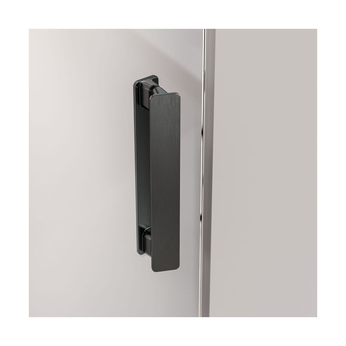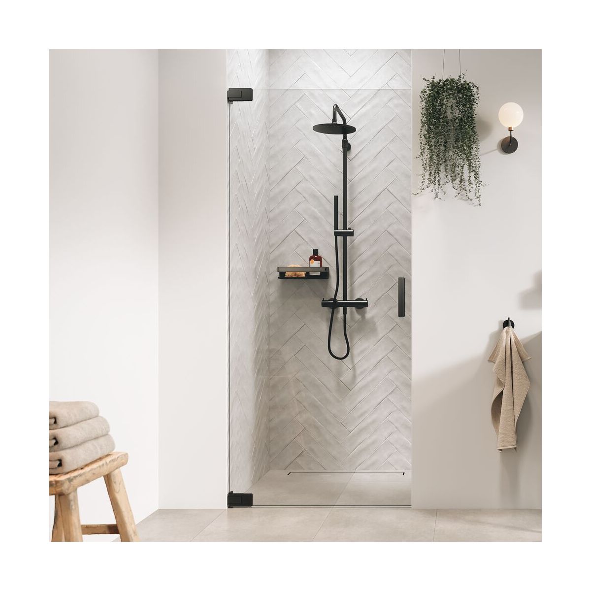 Verleihen Sie Ihrem Badezimmer mit der Pure-Flügeltür für Nischen zusätzlichen Komfort. Dank ihres minimalistischen Designs wirkt Ihr Badezimmer sofort geräumiger und offener. Die Tür ist 79,5 cm breit und ganze 200 cm hoch, was für mehr Wärme und Komfort beim Baden sorgt. Hochwertige Edelstahlbeschläge sorgen für eine flache Verbindung mit 8 mm starkem Sicherheitsglas, das mit einer Beschichtung gegen Kalkablagerungen versehen ist. So bleibt das Glas sauber und lässt sich nach dem Baden leichter trocknen. Wer würde das nicht wollen? Diese Flügeltüren lassen sich nach innen oder außen öffnen und sind mit einem automatischen Schließsystem ausgestattet, das das Schließen erleichtert. Die Scharniere und der Griff sind in gebürstetem Grau gehalten. Eine raffinierte und stilvolle Oberfläche, die zu einem minimalistischen, modernen Badezimmer passt.