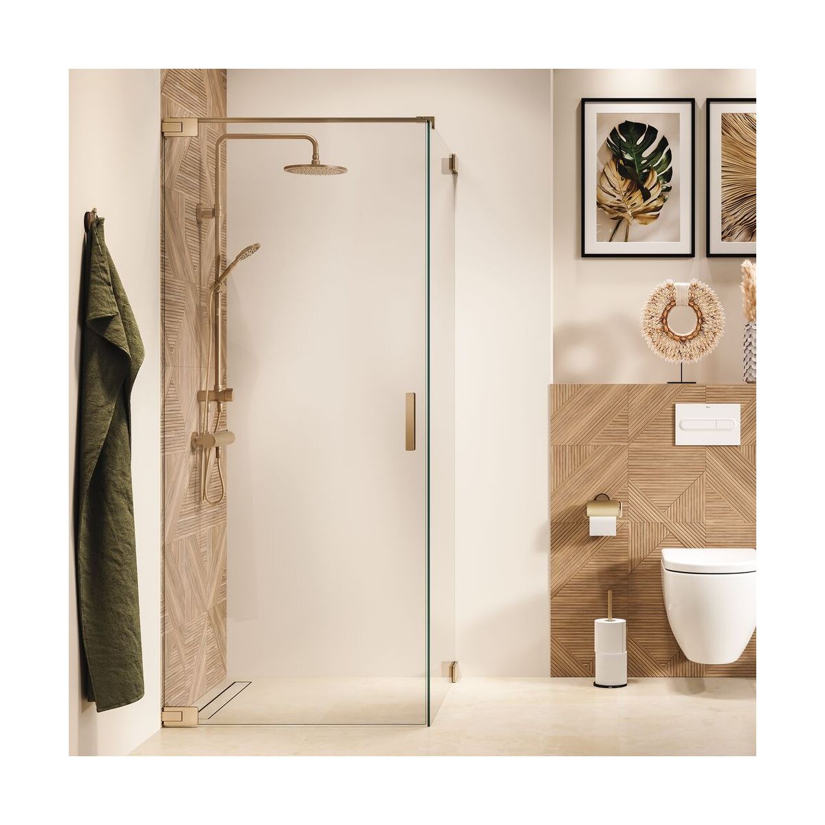 Erleben Sie eine einzigartige Kombination aus Stil und Funktionalität mit unseren Flügeltüren und Seitenwänden aus derselben Serie. Die Kabine ist 88 cm breit und passt somit in die meisten 90 cm breiten Duschwannen oder kann direkt auf den gefliesten Boden gestellt werden. Hochwertige Edelstahlbefestigungen sorgen für eine flache Verbindung mit 8 mm starkem Sicherheitsglas, das mit einer Beschichtung gegen Kalkablagerungen versehen ist. So bleibt das Glas sauber und lässt sich nach dem Baden leichter abtrocknen. Wer würde das nicht wollen? Die Flügeltüren lassen sich nach innen oder außen öffnen und sind mit einem automatischen Schließsystem ausgestattet, das das Schließen erleichtert. Die Scharniere und der Griff sind dezent in gebürstetem Gold gehalten. Dadurch erhält das Badezimmer ein luxuriöses Aussehen.