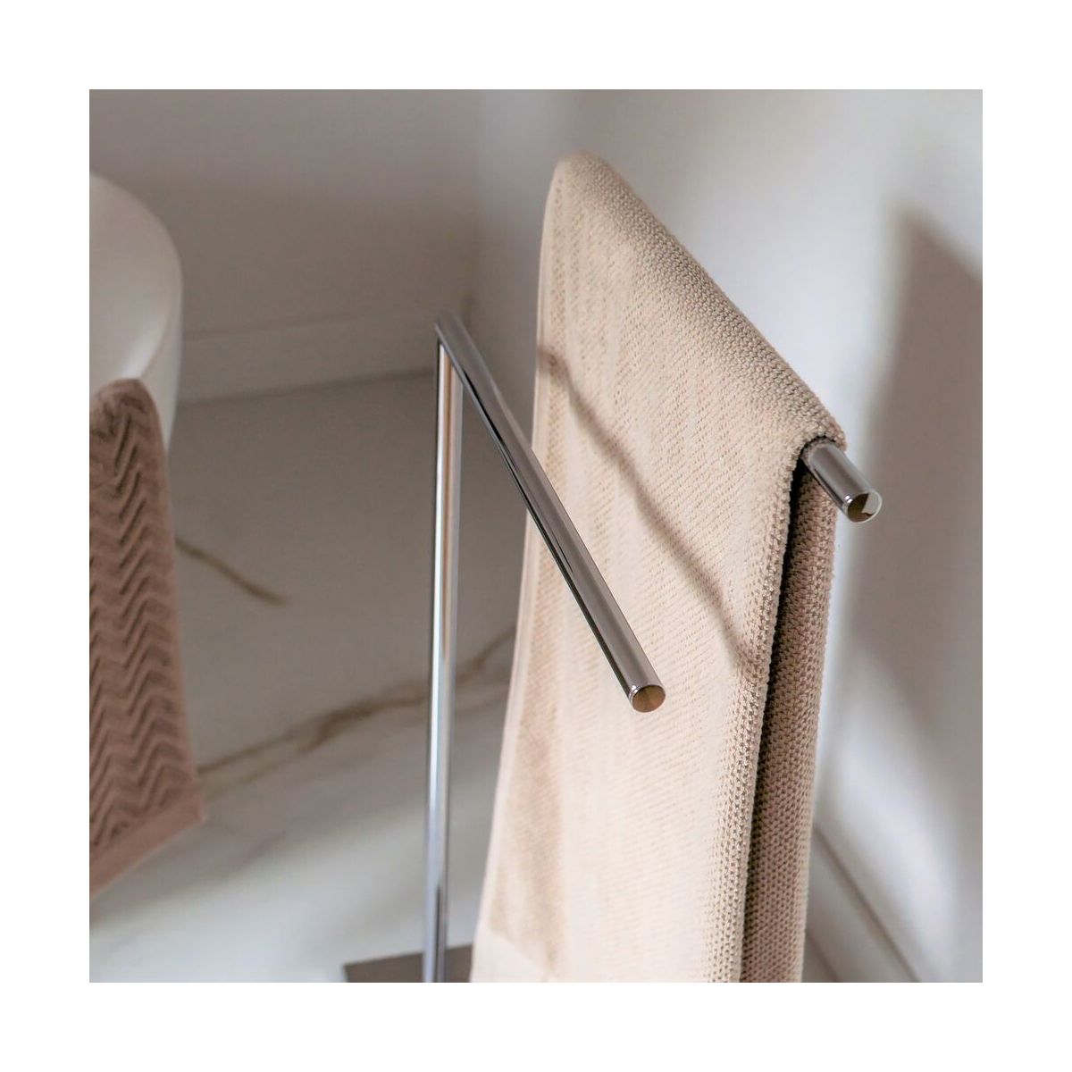 - Kurz gesagt: Dieser Handtuchhalter ist ideal, um Ordnung in einem kleineren Badezimmer zu schaffen.