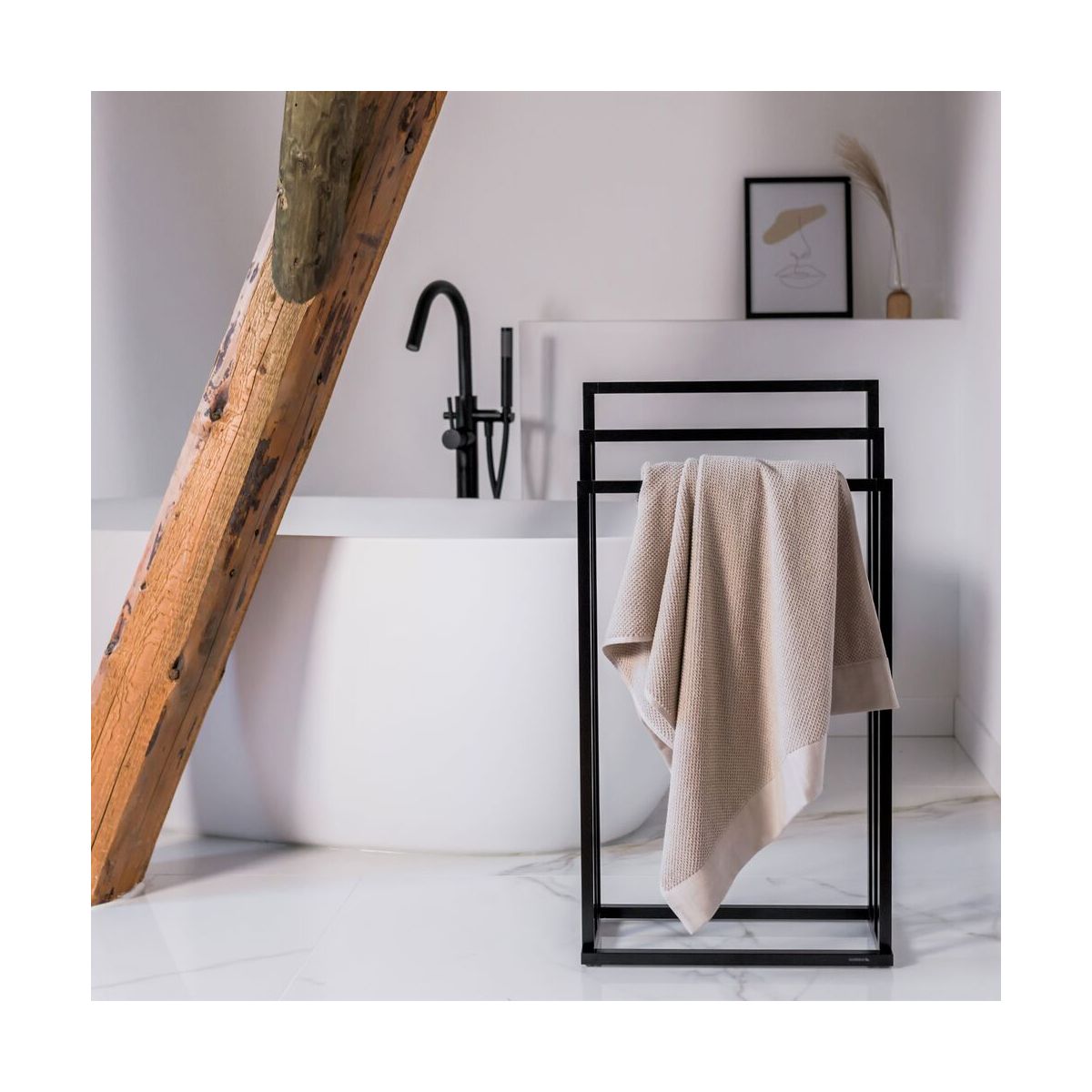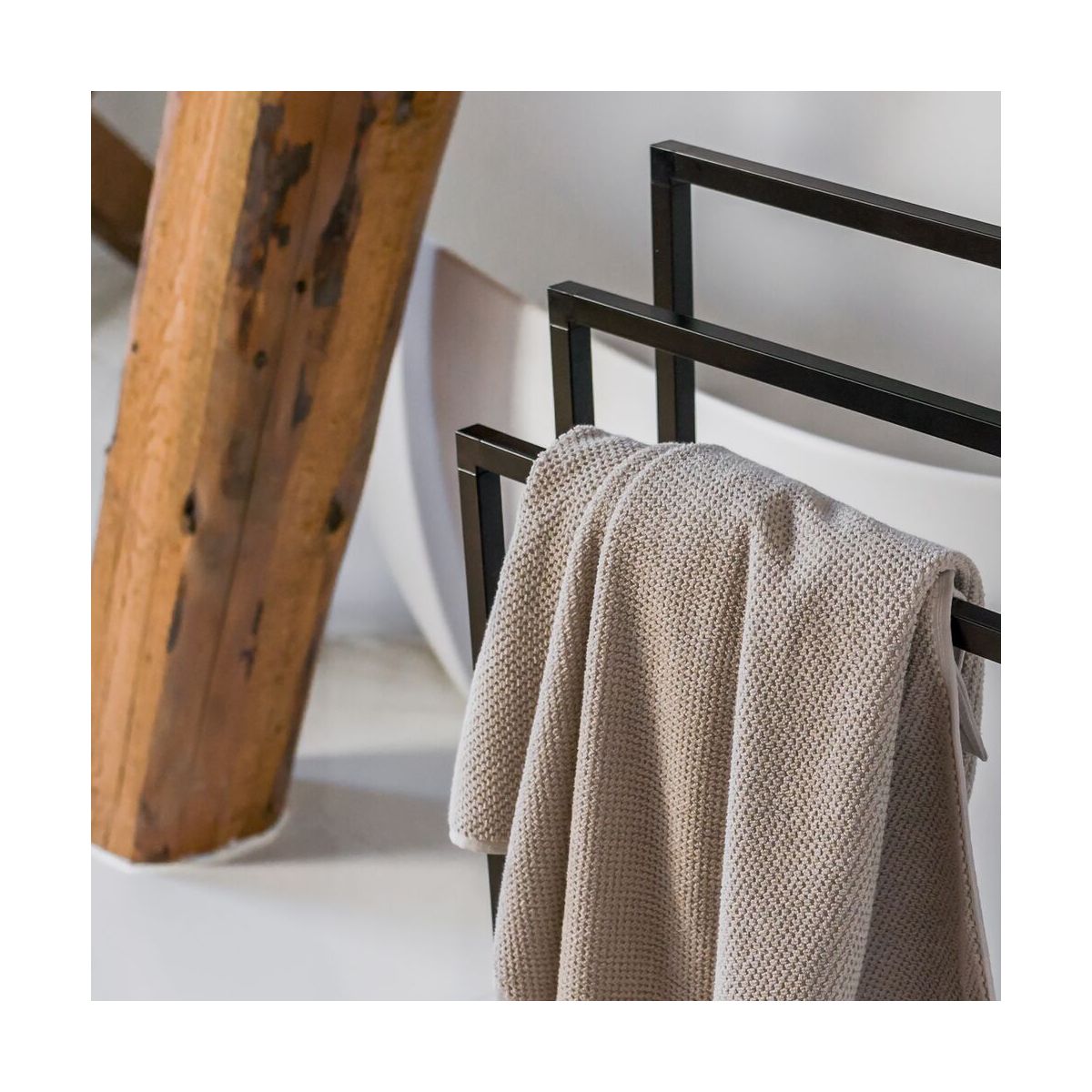 Es ist angesagt, quadratisch zu sein. Verleihen Sie Ihrem Badezimmer mit diesem schwarzen Handtuchhalter denselben Stil wie dem Rest Ihres Zuhauses. Stellen Sie ihn einfach an die richtige Stelle und hängen Sie Ihre Handtücher auf. Wie praktisch! Dieser Handtuchhalter ist die perfekte Grundlage für ein aufgeräumtes Badezimmer. Mit Tube fühlen Sie sich wie zu Hause.