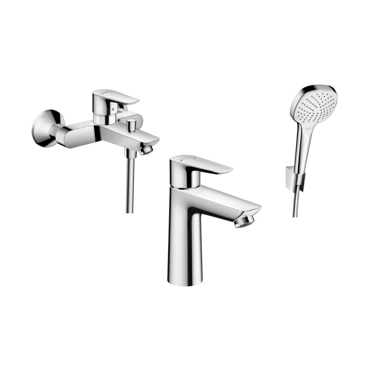 Inbegriffen: Waschbeckenarmatur, Wannenbatterie, Duschset