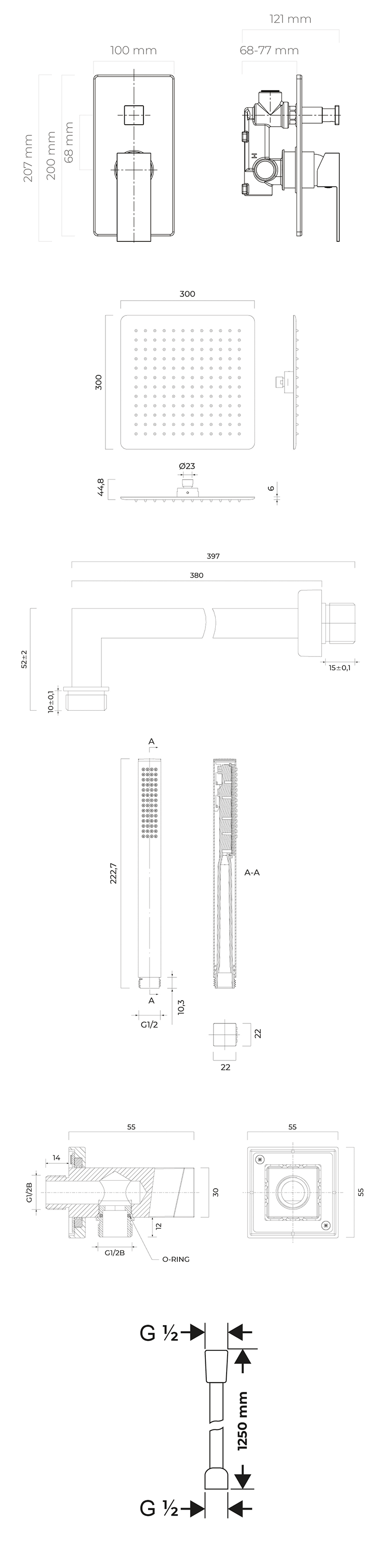 Abmessungen 300 x 300 mm