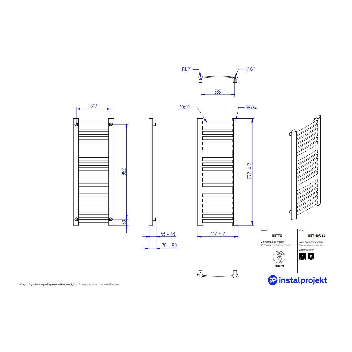 Spezielle Ventilgarnitur für RETTO-Heizkörper, geeignet für die Montage in Anlagen mit Unterversorgung. Die rechte Version ist für die Versorgung vom linken Kollektor vorgesehen (und umgekehrt). Möglichkeit der Montage eines elektrischen Heizelements im Rücklaufverteiler. Das Set ermöglicht eine präzise Temperaturregelung und einen zuverlässigen Betrieb bei hohen Temperaturen und hohem Druck.