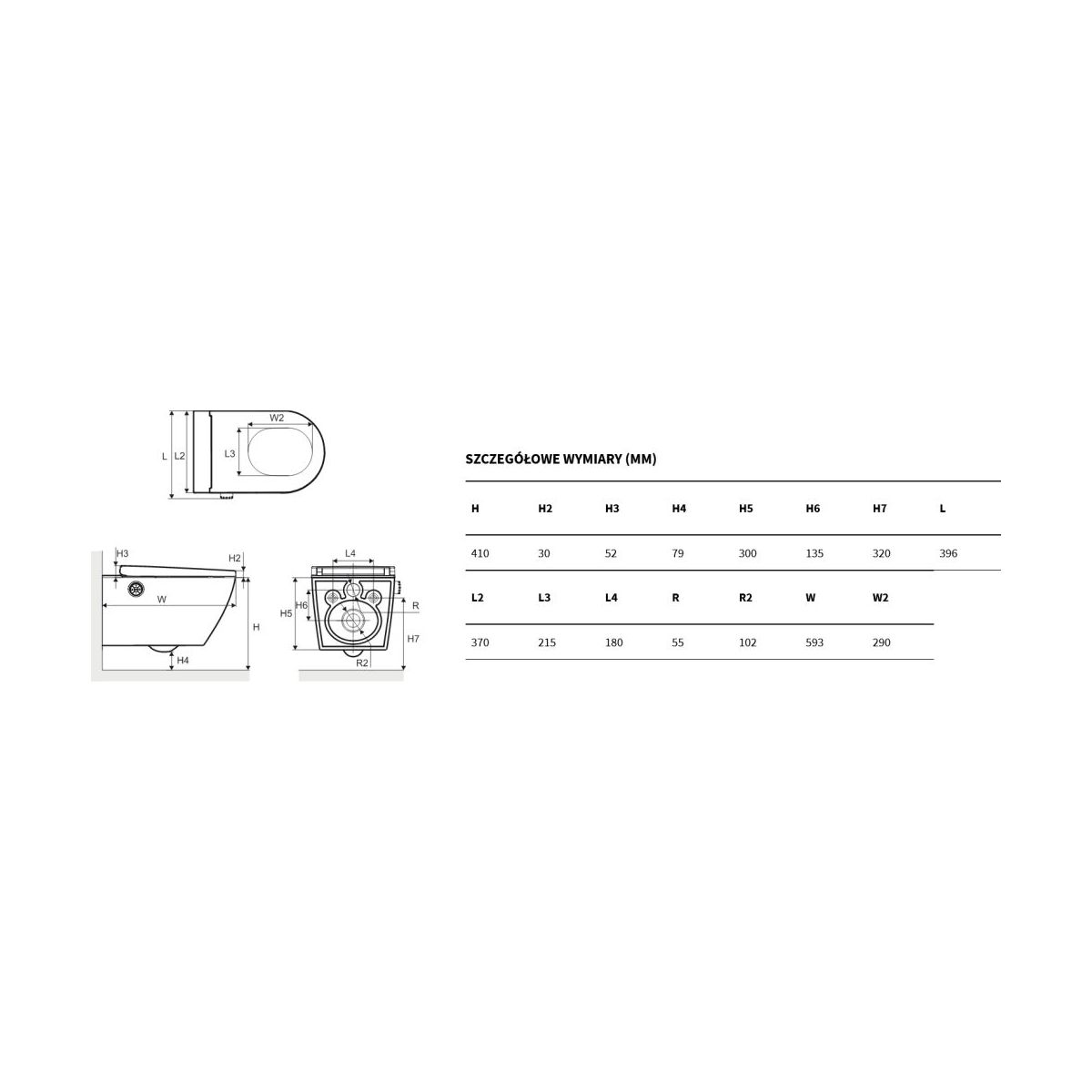 Über das Bedienfeld oder die Fernbedienung (optional) kann der Benutzer die Wassertemperatur, die Sprühstärke und die Position der Düse ändern. Die Toilette verfügt über eine Damenwasch- und eine Rückwaschfunktion, die jederzeit ein- und ausgeschaltet werden kann. Das Gerät verfügt über einen Sitz mit Soft-Close-Mechanismus und einen Nachtmodus, d. h. eine LED-Beleuchtung. Zuverlässigkeit und lange Lebensdauer werden durch ein automatisches Entkalkungssystem gewährleistet.