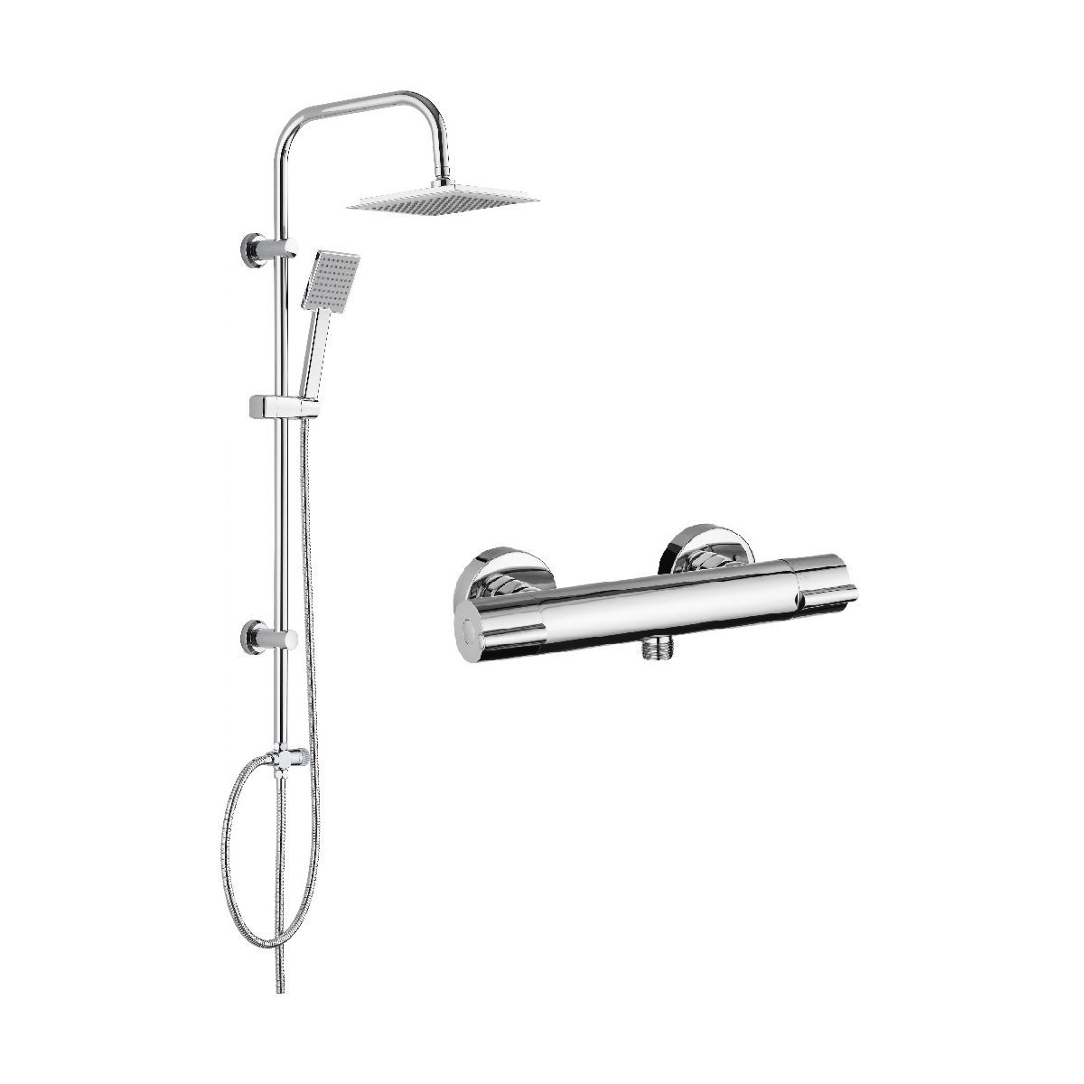 - Oberer Duschkopf, verchromt, mit den Maßen 210 x 210 mm