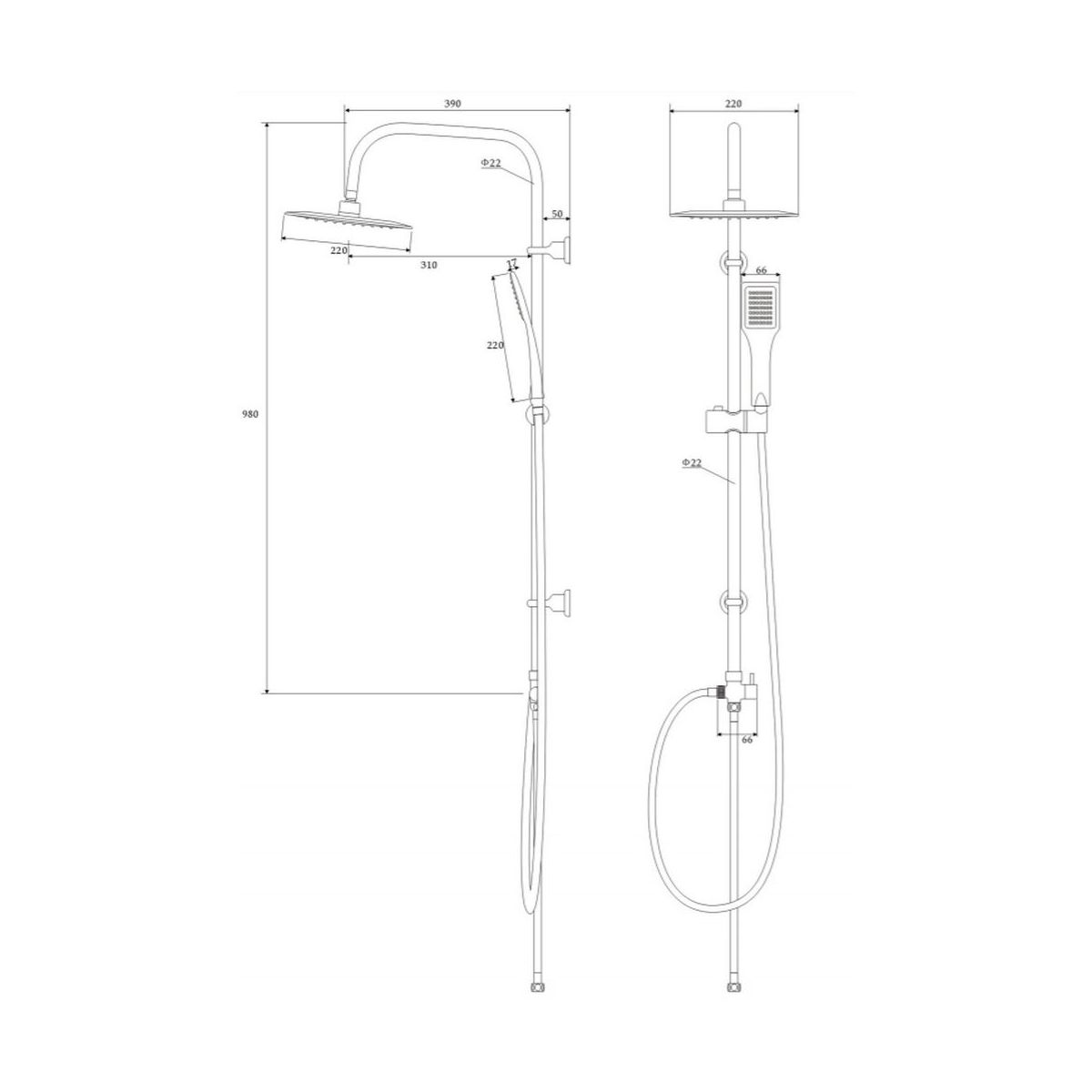 Inbegriffen: Batterie ohne Schalter, Duschkopf, Duschkopf, Duschschlauch, Duschstange