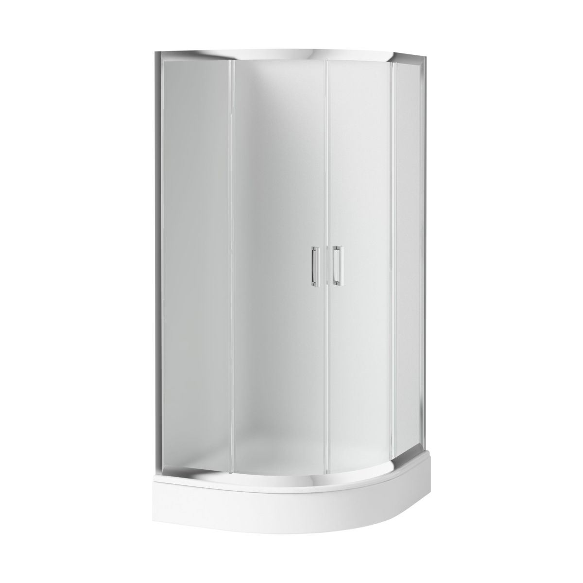 - halbrunde Kabine mit Duschwanne und integrierter Verkleidung