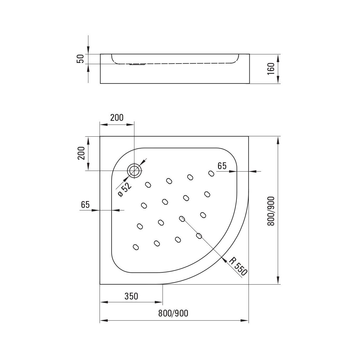 2. Halbrunde Duschwanne 90 cm Deante Standard New KTA053B