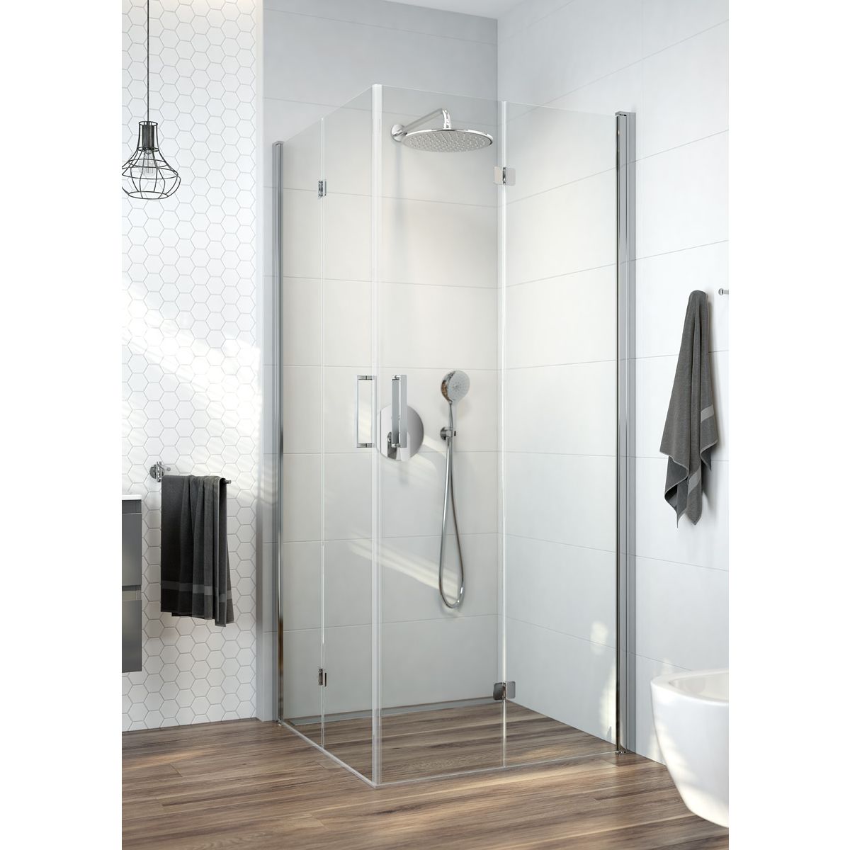 Äußerst charmant, einfach und doch auffallend, wird es Ihr Badezimmer zum Strahlen bringen und ihm Charakter verleihen. Das Modell ist sowohl für große als auch für kleine Innenräume geeignet. Dies ist der praktischen Lösung zu verdanken, dass die Tür auch nach innen geöffnet werden kann.