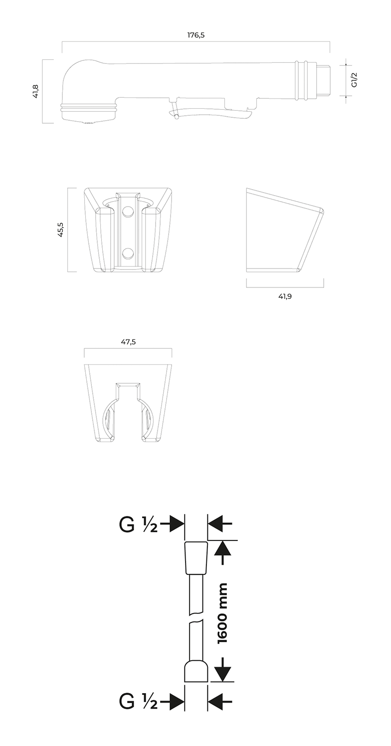 Punktbrausehalter zum Halten des Brauseschlauchs, mit verjüngtem Ende
