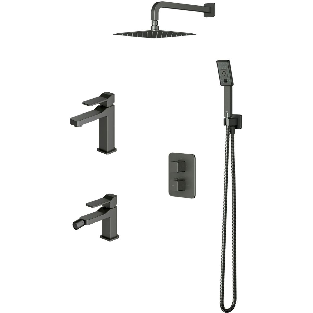 2. Omnires Slide Unterputz-Thermostat-Duschset mit Regenduschkopf in Graphit