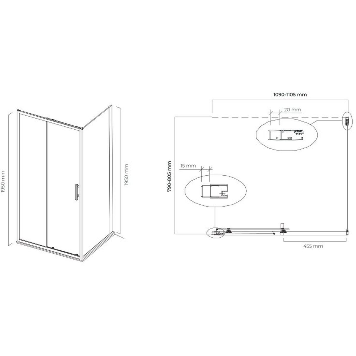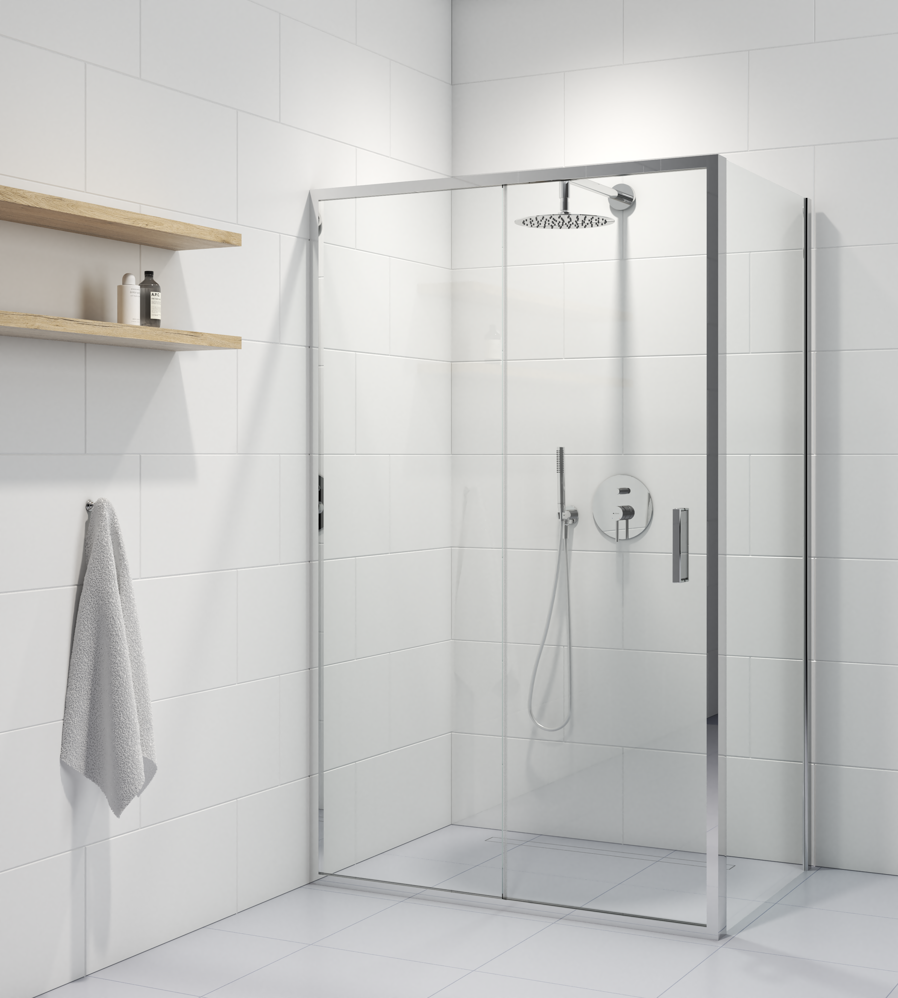 Rechteckige Duschkabine mit Schiebetüren, 6 mm Klarglas mit beidseitig im Produktionsprozess eingesetzter Oltens SmartClean‑Beschichtung.