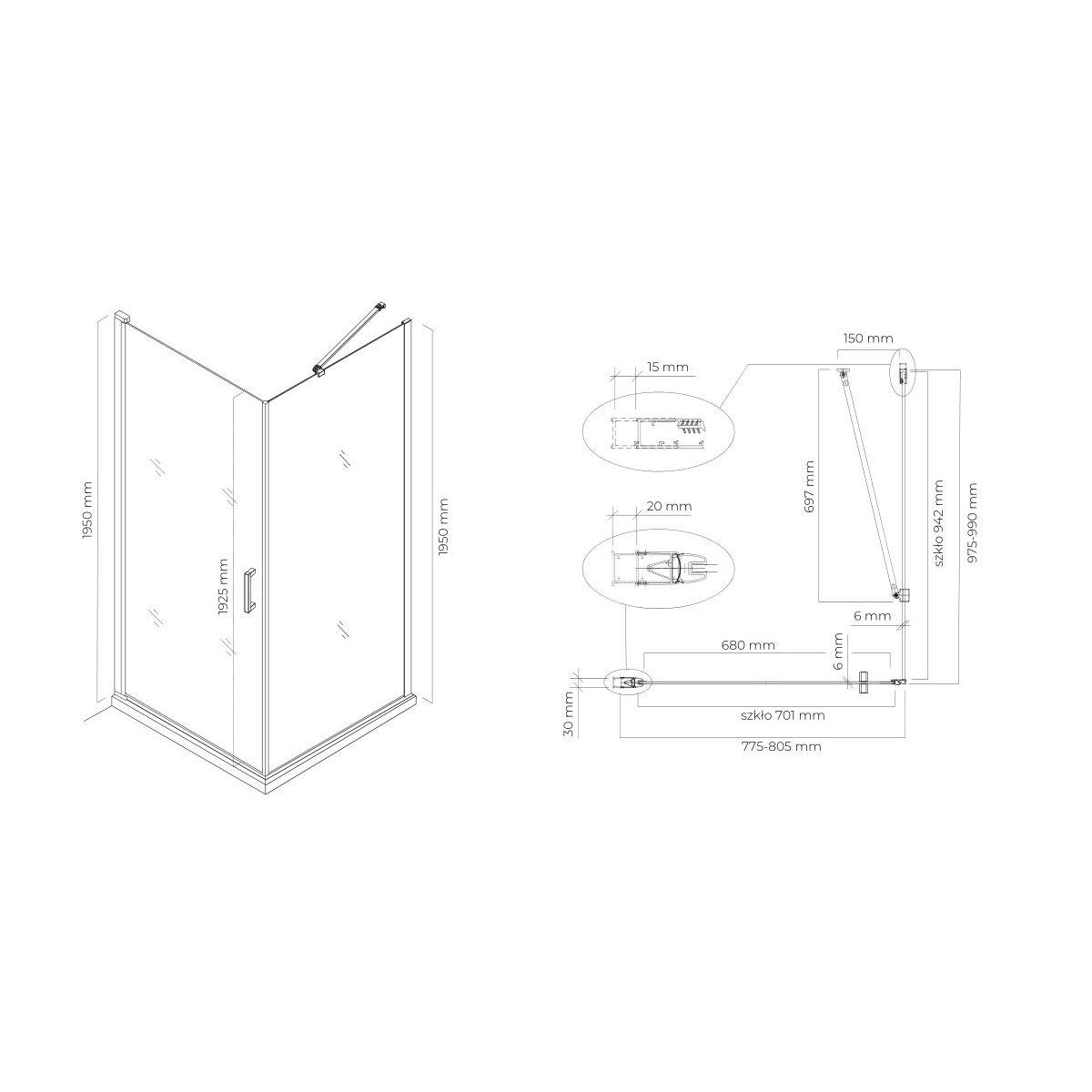 TECHNISCHE ZEICHNUNG DER DUSCHKABINE