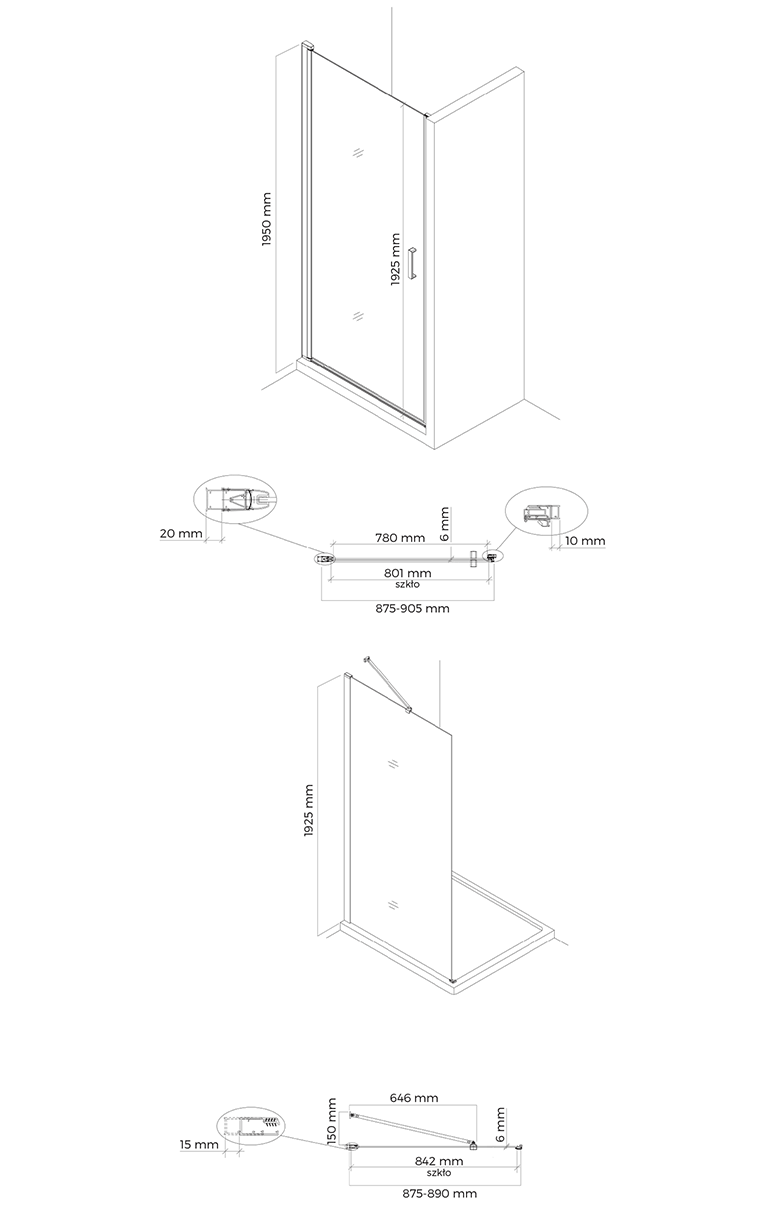 TECHNISCHE ZEICHNUNG DER DUSCHKABINE