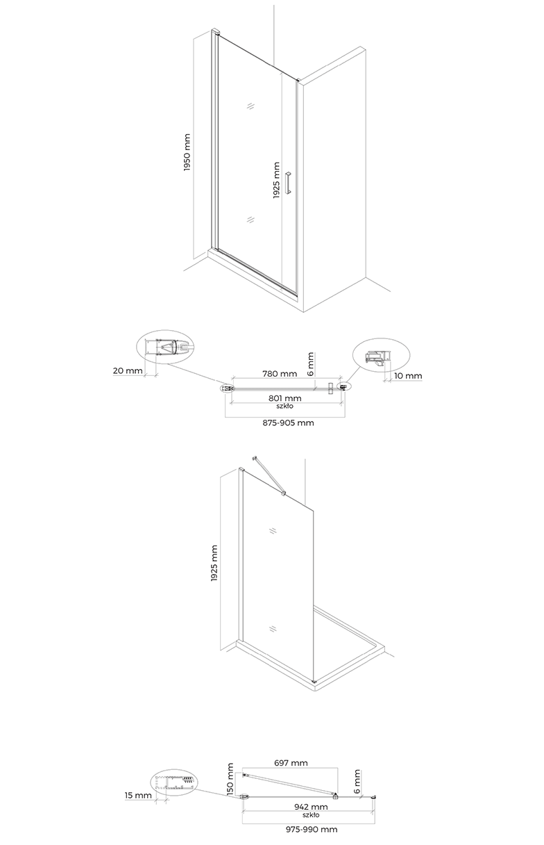 TECHNISCHE ZEICHNUNG DER DUSCHKABINE