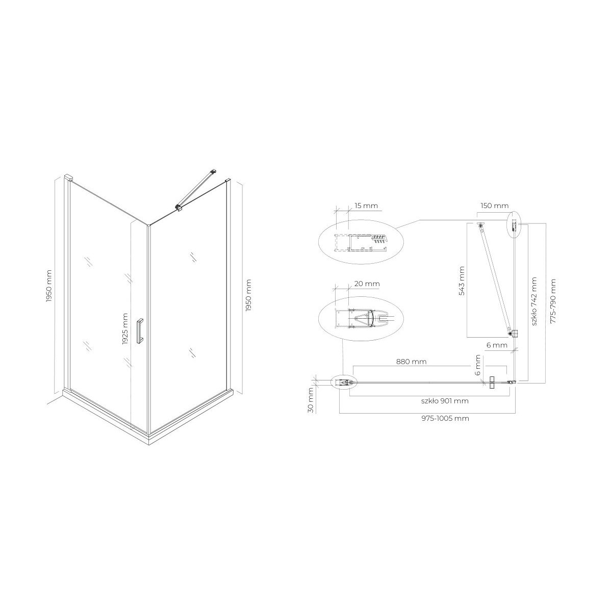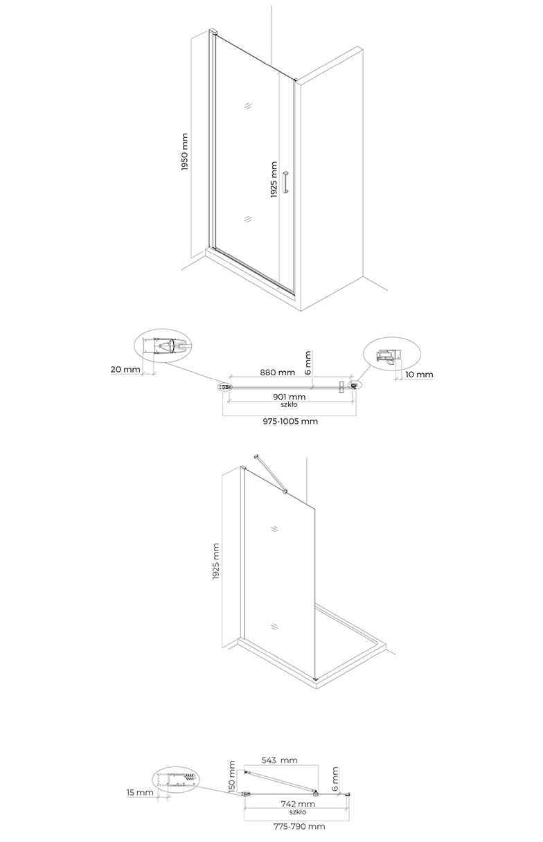 TECHNISCHE ZEICHNUNG DER DUSCHKABINE