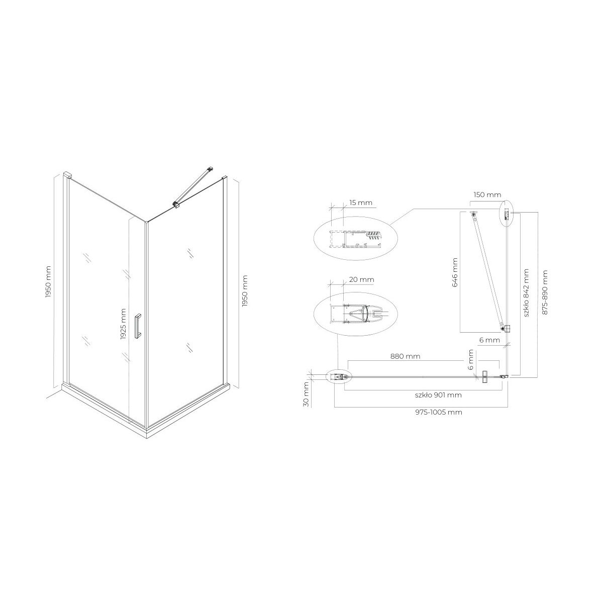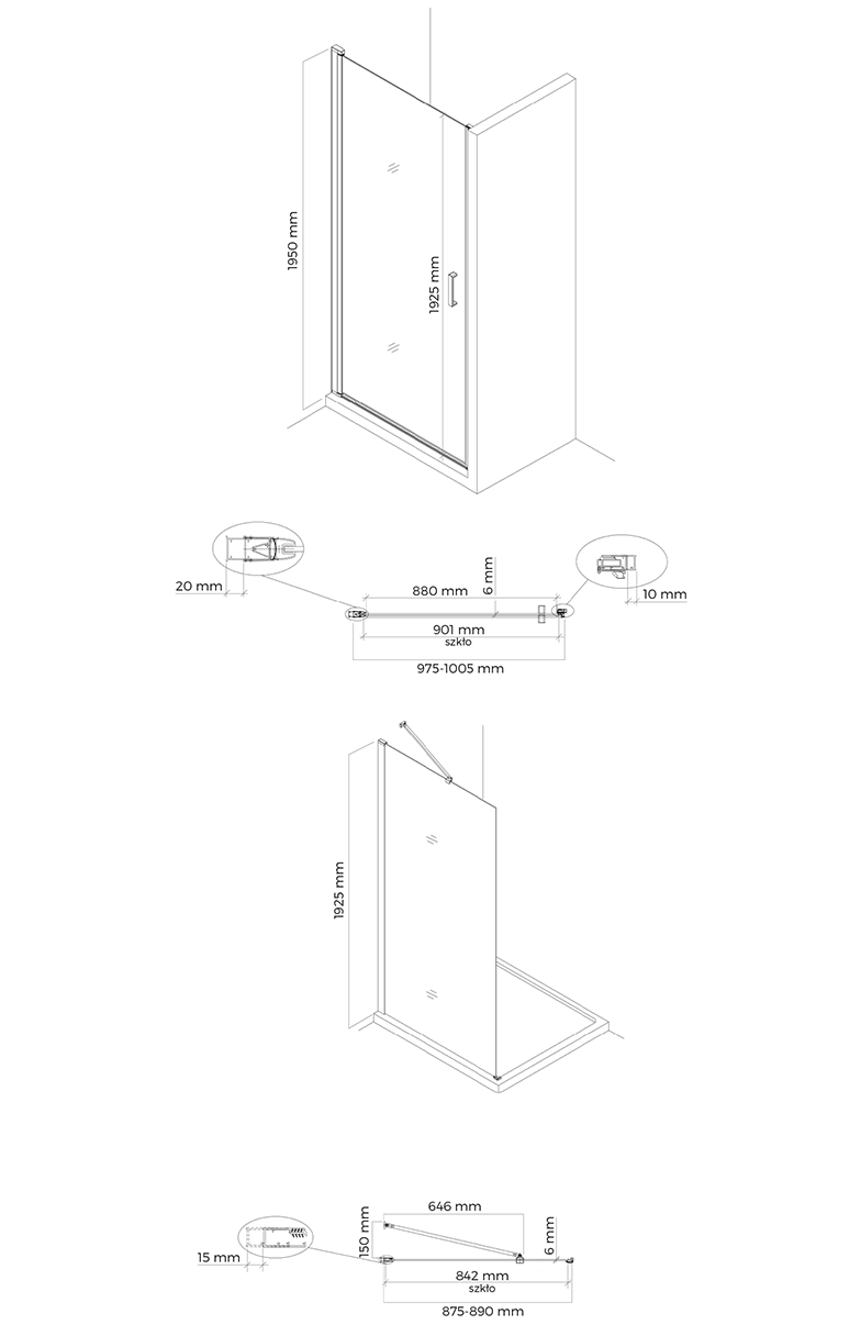 TECHNISCHE ZEICHNUNG DER DUSCHKABINE