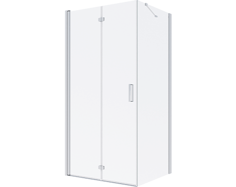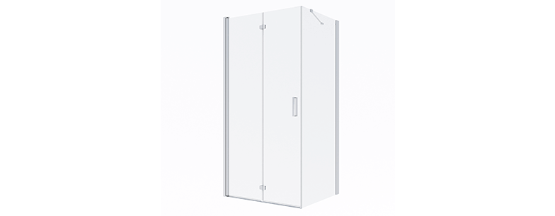 Rechteckige Duschkabine mit scharnierten Falttüren. Dank der praktischen Lösung, die Tür auch nach innen zu öffnen, ist die Duschwand ideal für kleinere Bäder, in denen wir nach platzsparenden Produkten suchen.