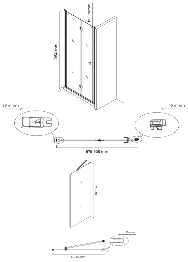 TECHNISCHE ZEICHNUNG DER DUSCHKABINE