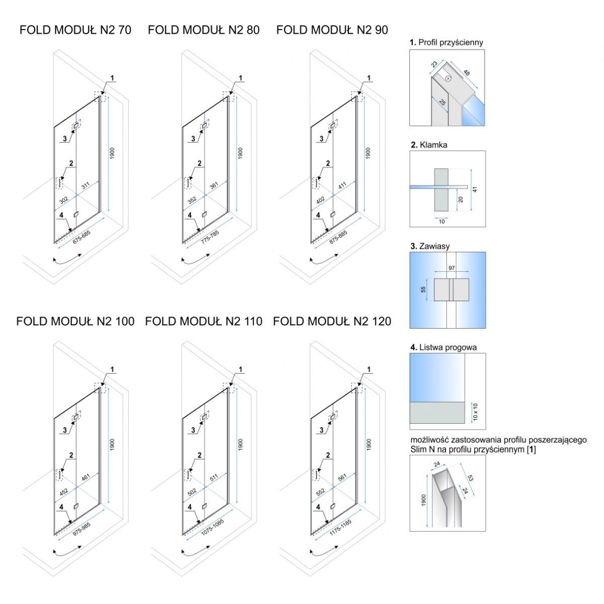 - Verstellbereich an den Profilen: 97,5-98,5 cm