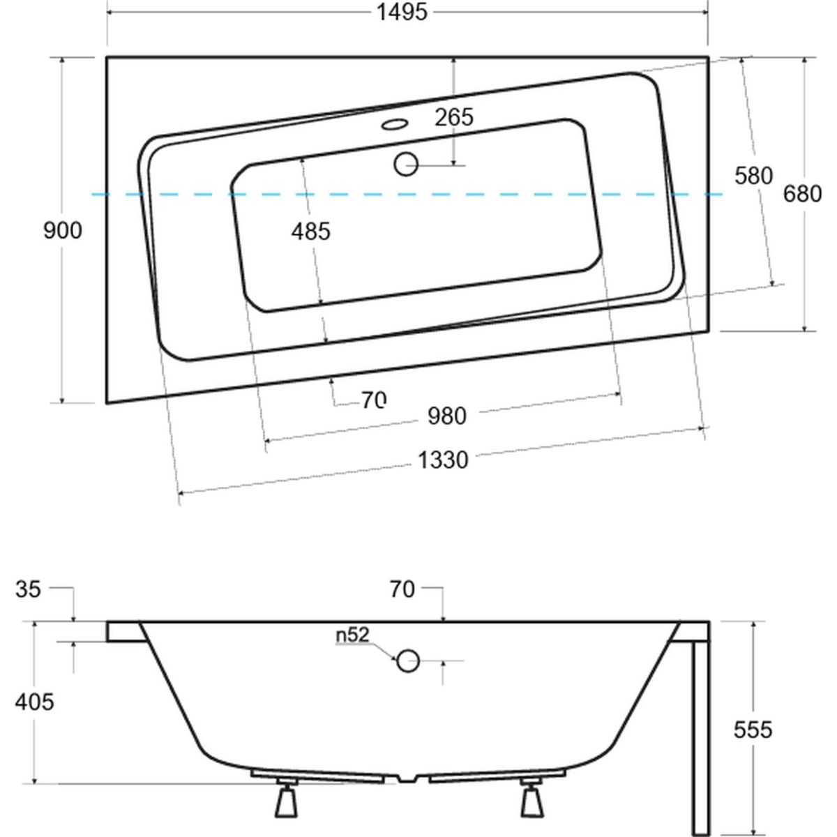 - Badewanne aus Sanitäracryl mit Verkleidung