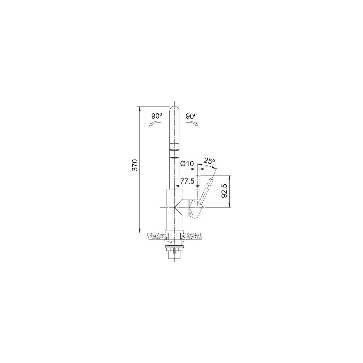 - Schwenkbereich des Auslaufs: 180 Grad