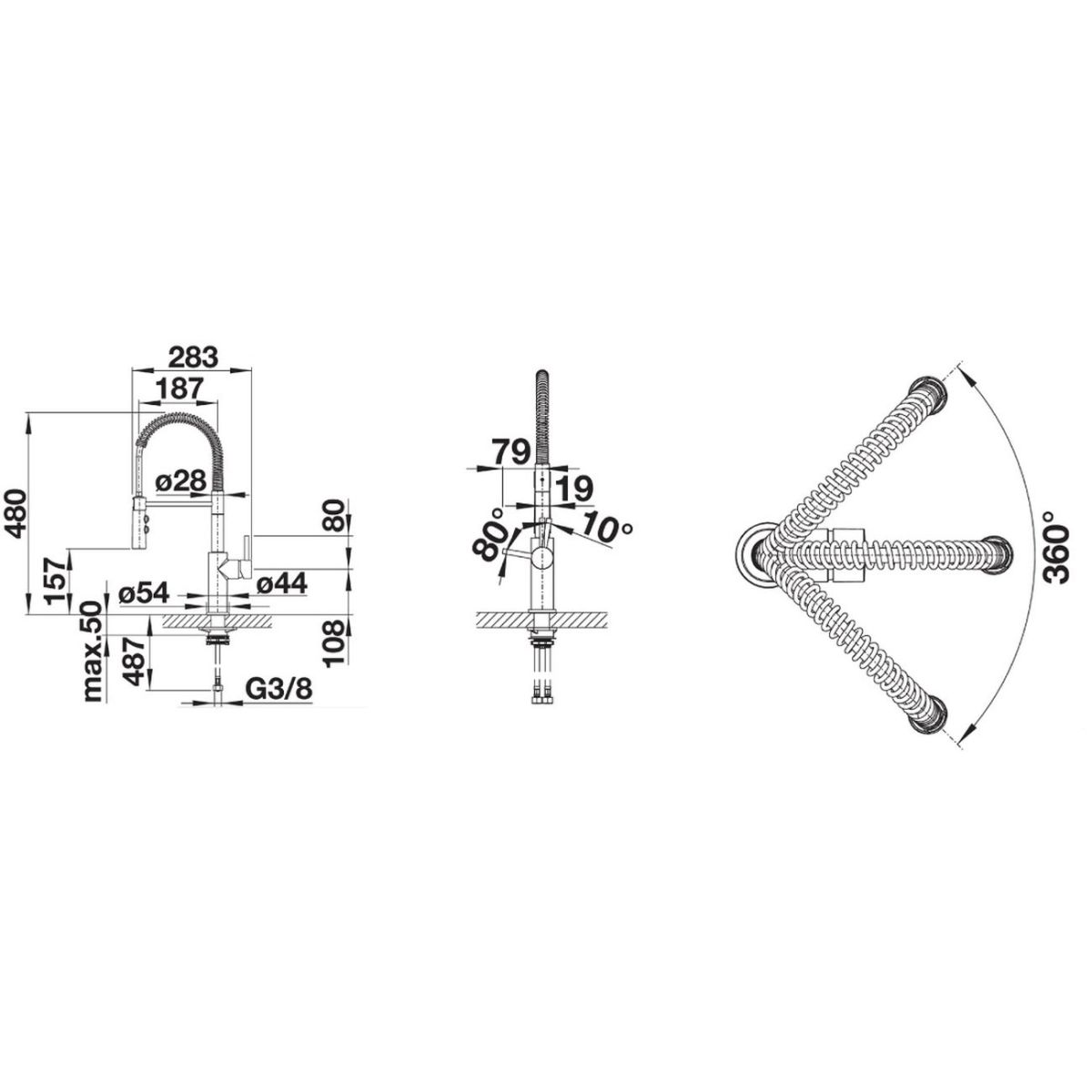 - Schwenkwinkel des Auslaufs 360°