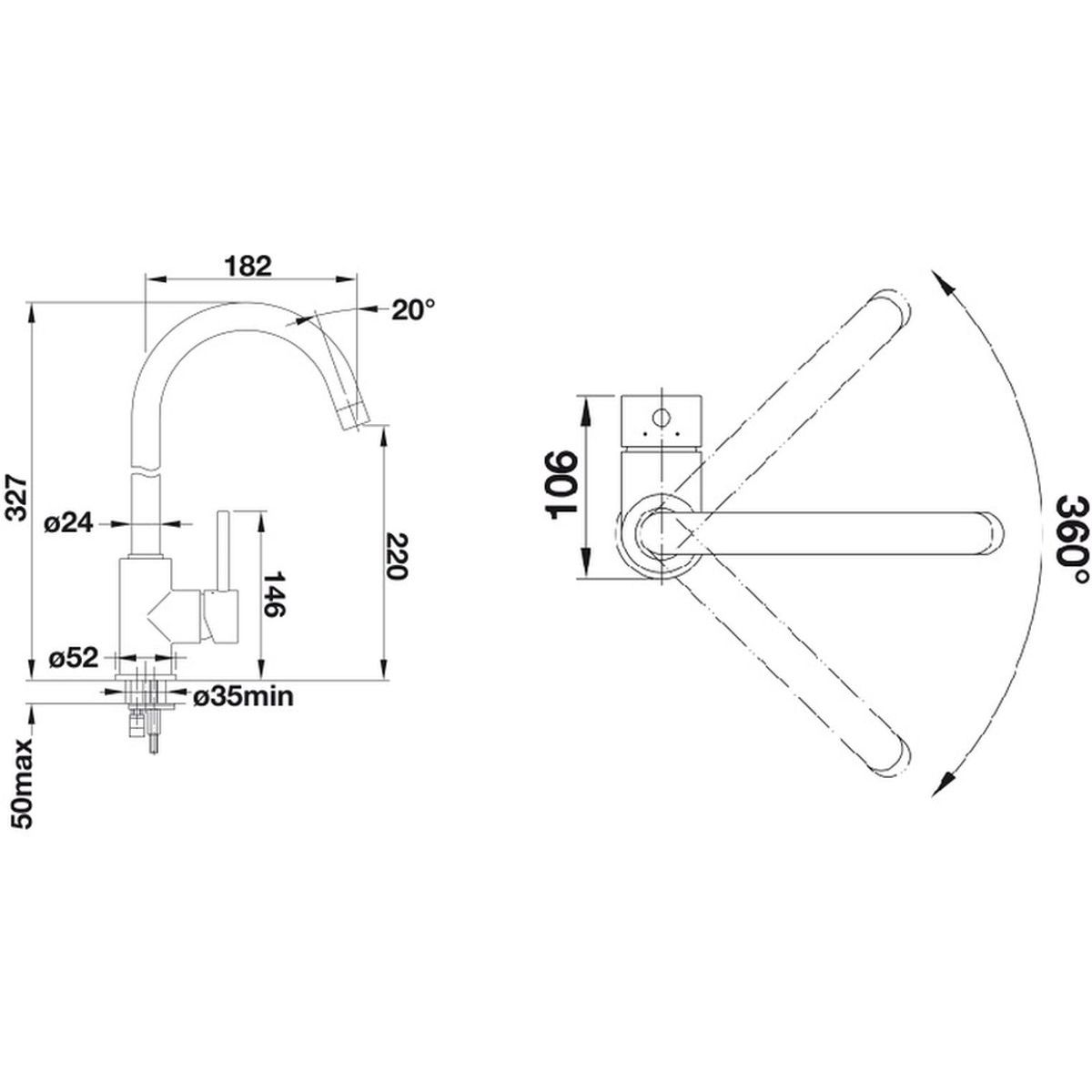 - erforderliche Bohrung für die Armatur: 35 mm Durchmesser