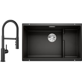 Set aus Spüle und Armatur in Schwarz/Mattschwarz